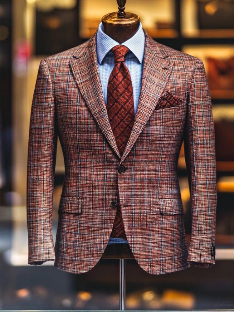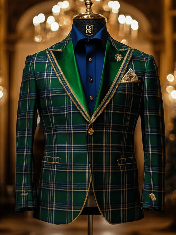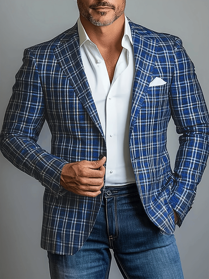 Business Casual Notch Lapel Chest Pocket Single Breasted Plaid