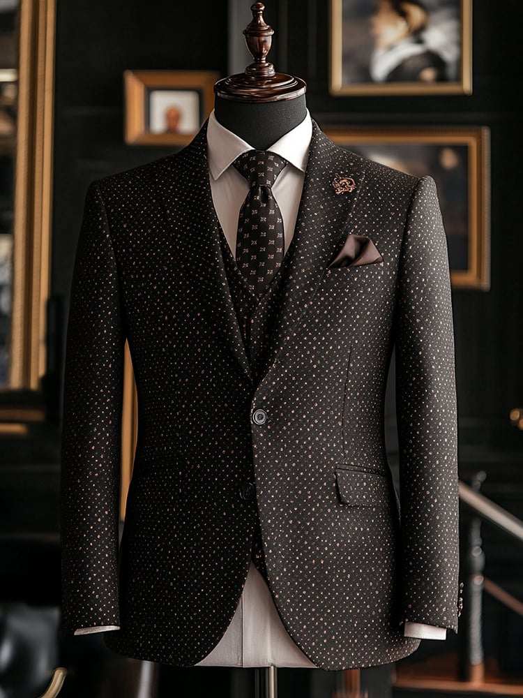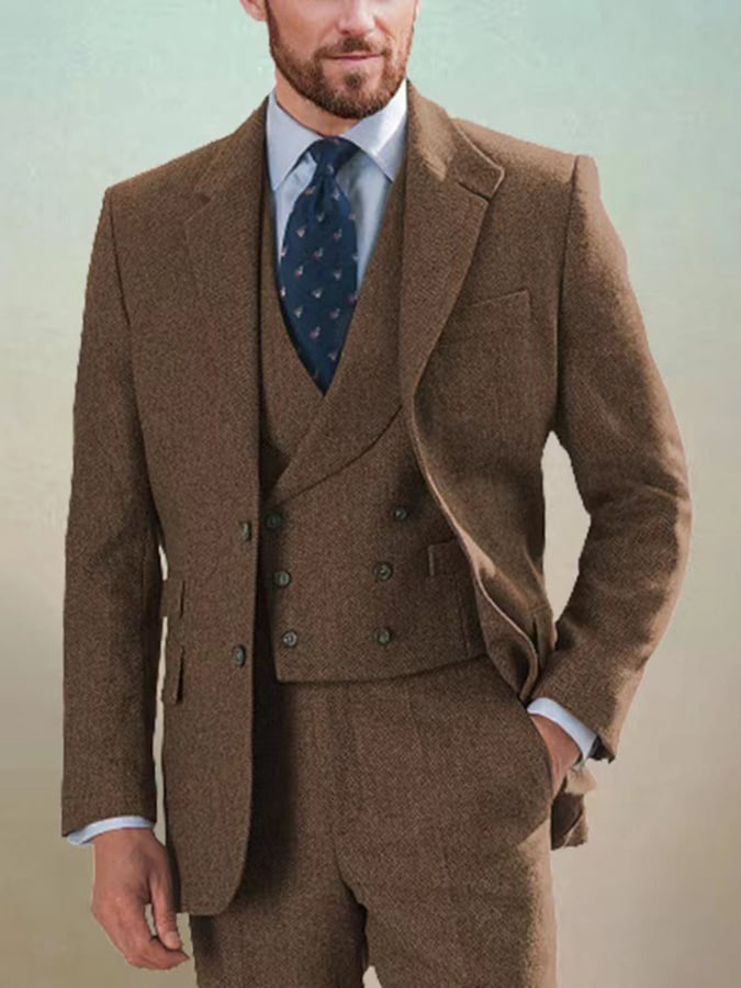 Men's Business Single-Breasted Solid Color Three-Piece Suit