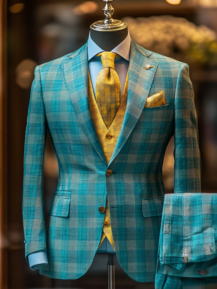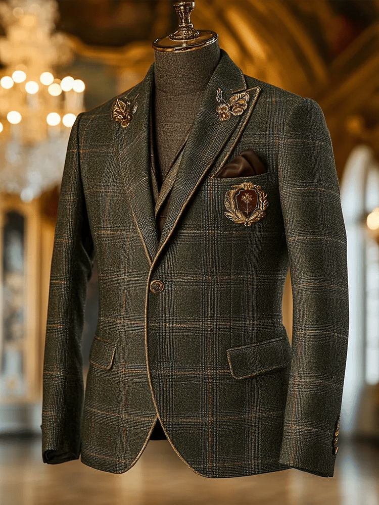 Men's Fashionable Plaid Design Single-Breasted Pocket Design Casual Suit