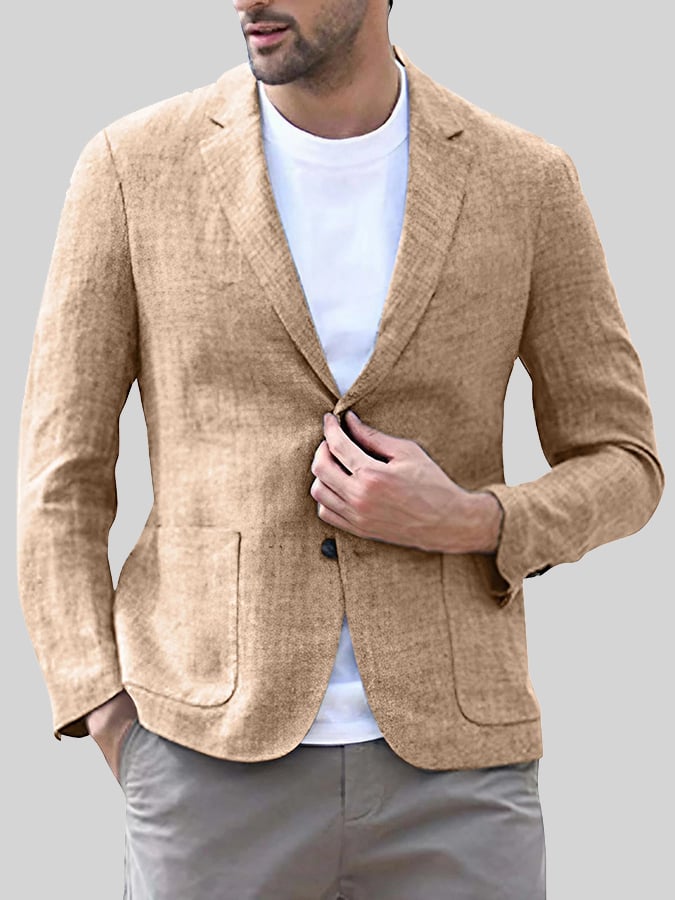 Men's Fashionable Solid Color Design Single-Breasted Pocket Design Casual Suit