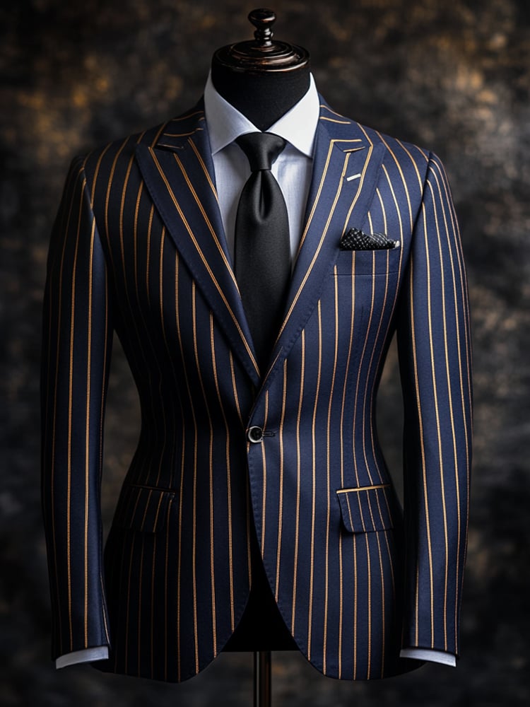 Men's Fashionable Stripe Design Single-Breasted Pocket Design Casual Suit