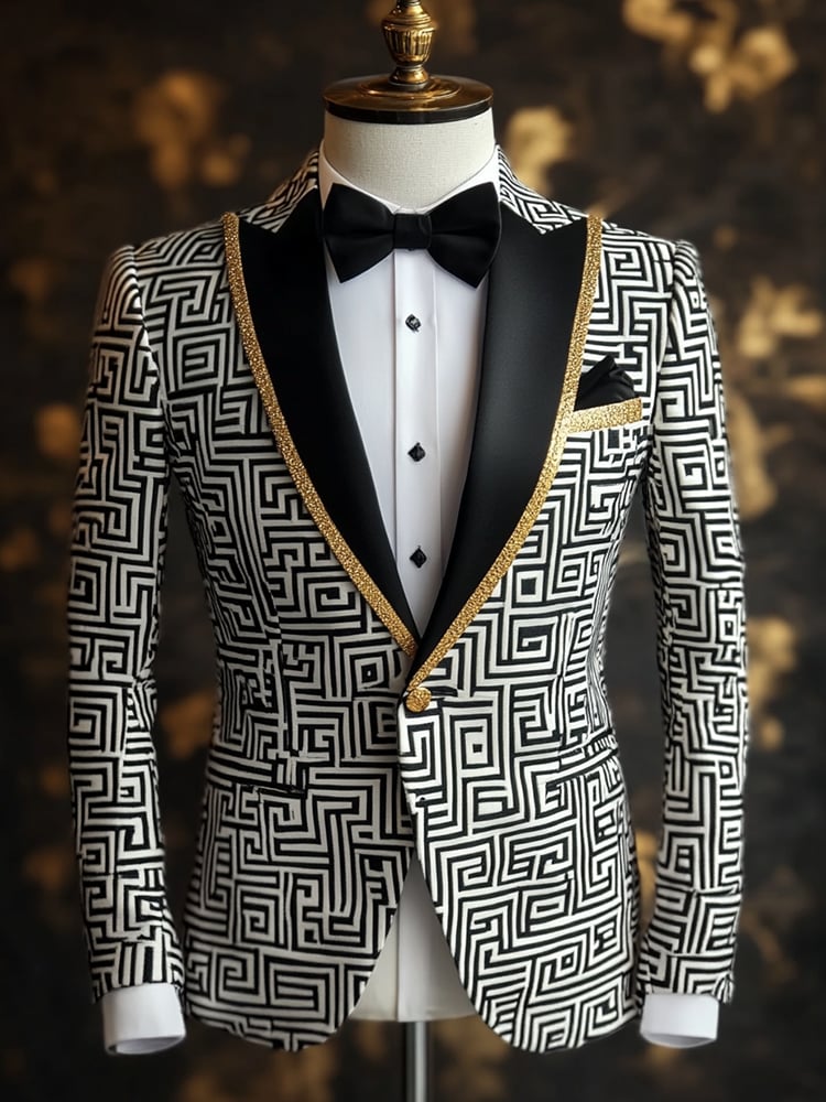 Men's Blazer One Button Shawl Lapel Tuxedo,Black Paisley