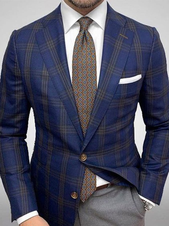 Men's Vintage Single-Breasted Plaid Gentleman's Business Suit Jacket