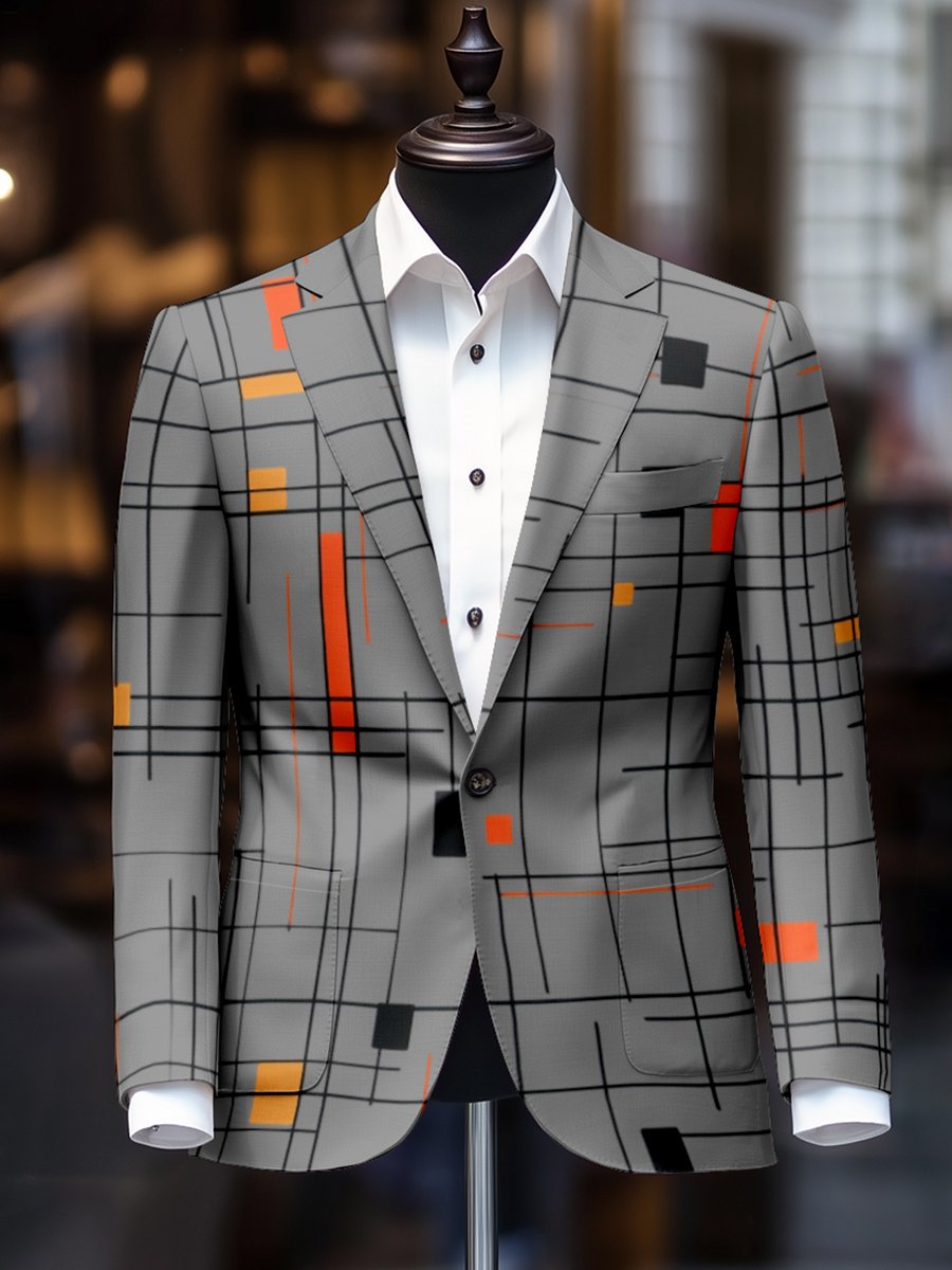 Men's Stylish Contrast Color Printed One-Button Slim-Fit Blazer
