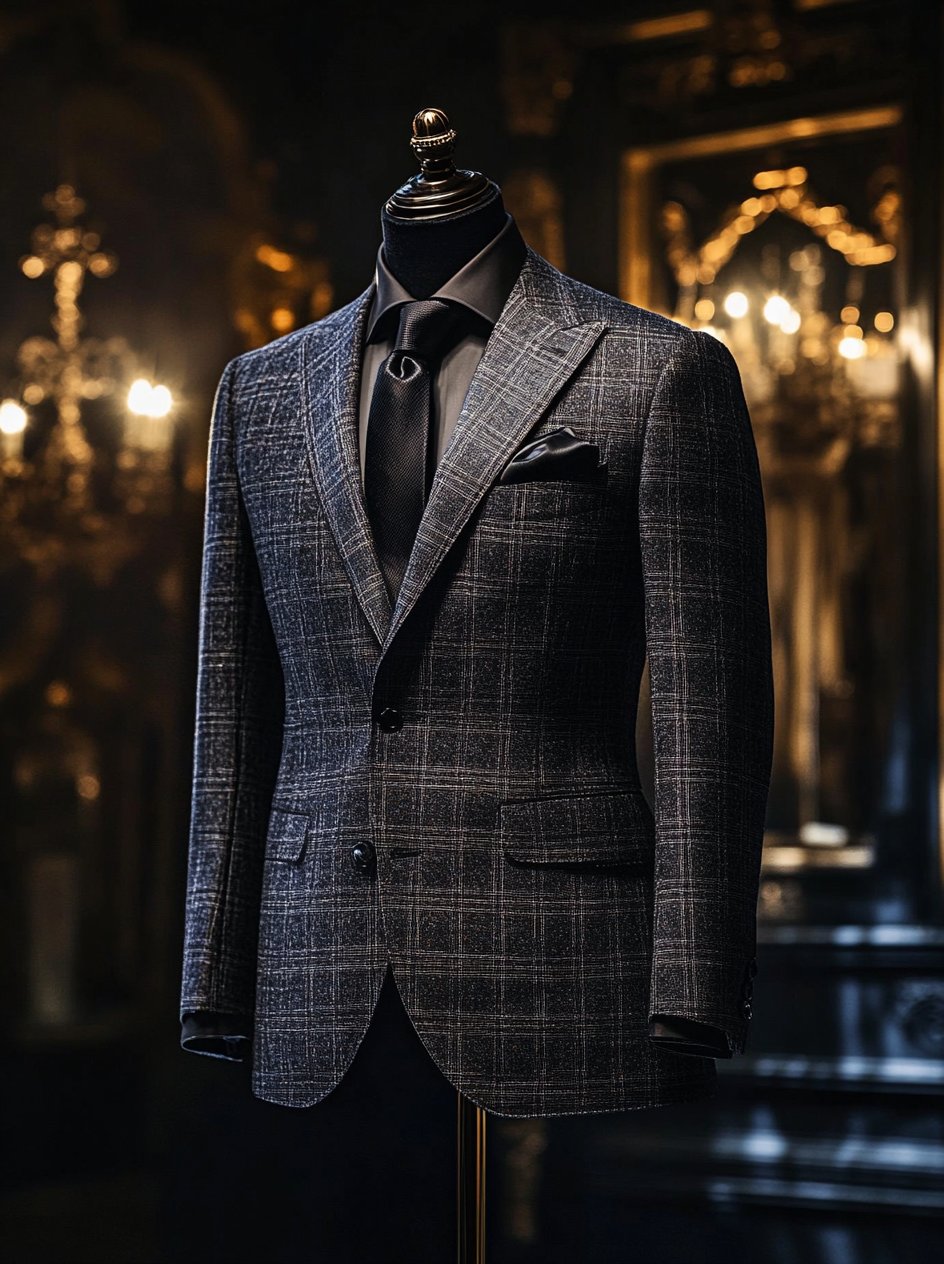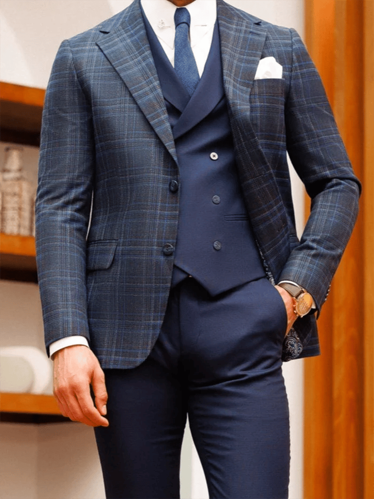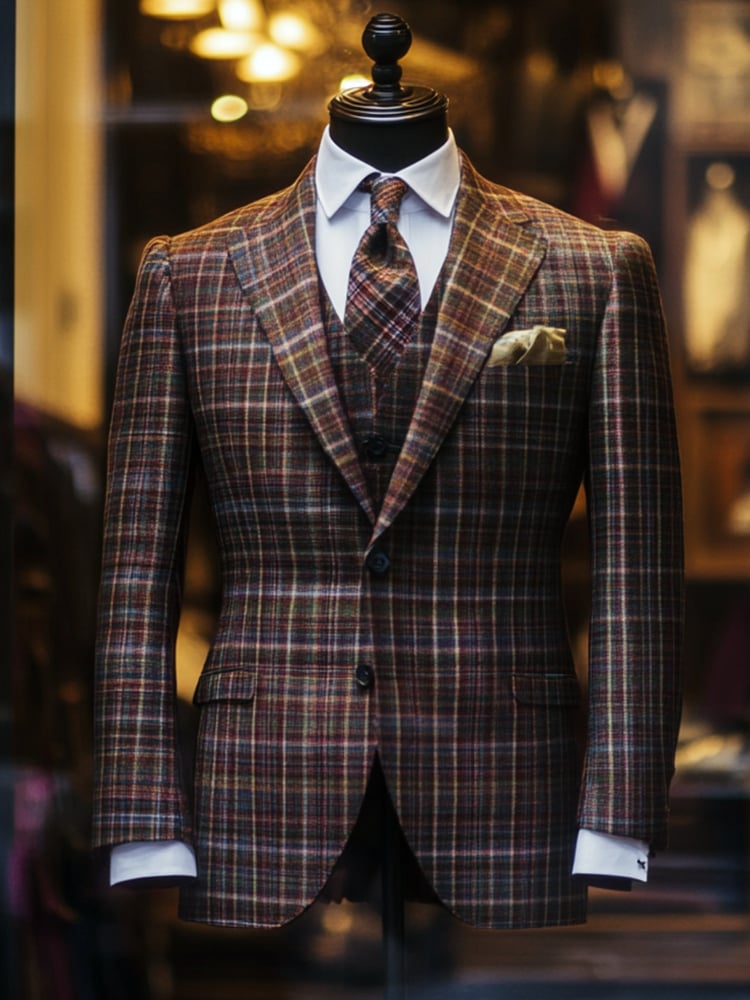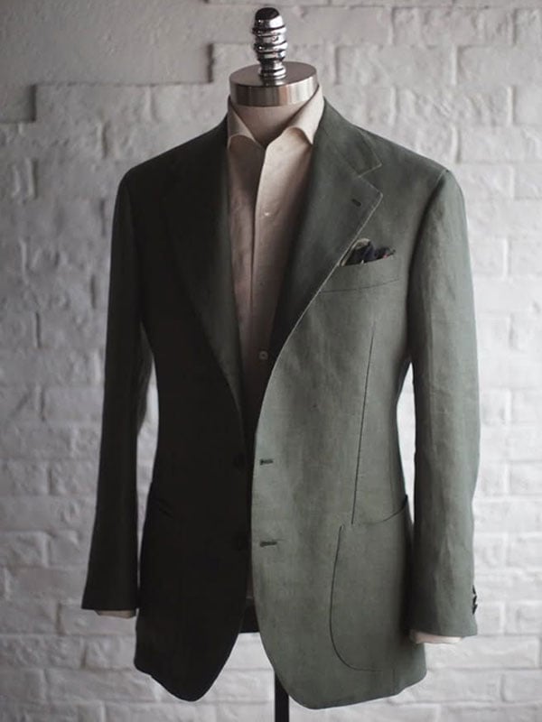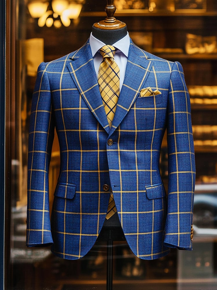 Men's Green Plaid Luxury Business Suit Jacket