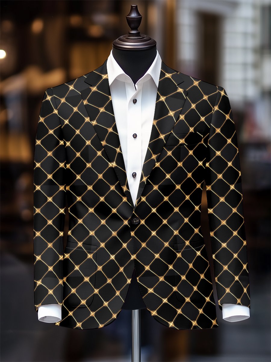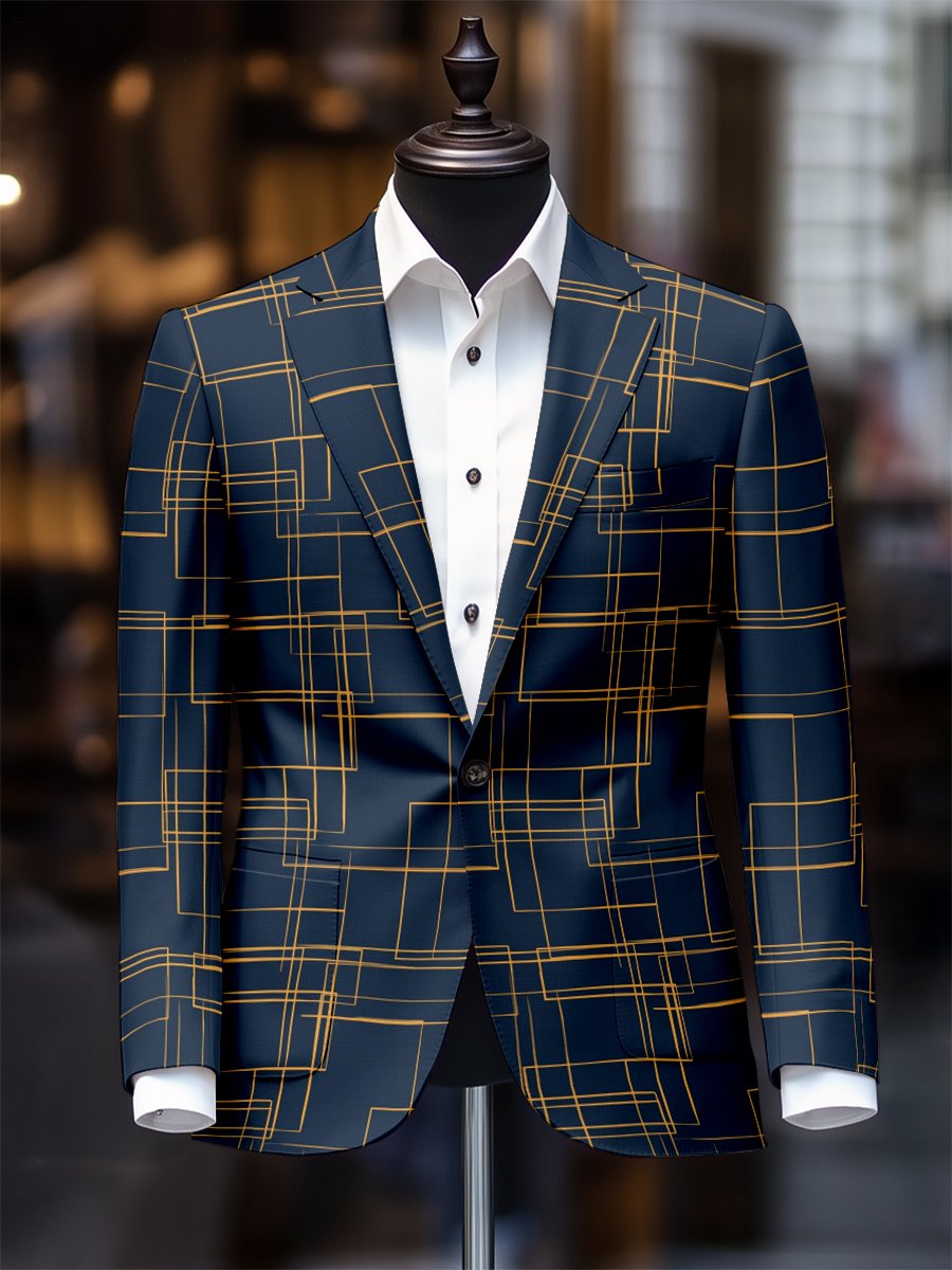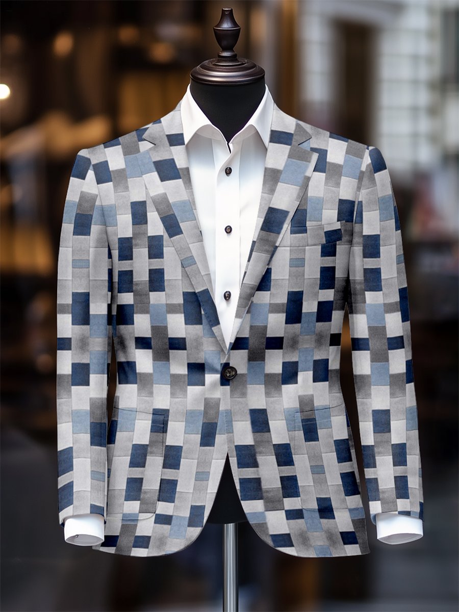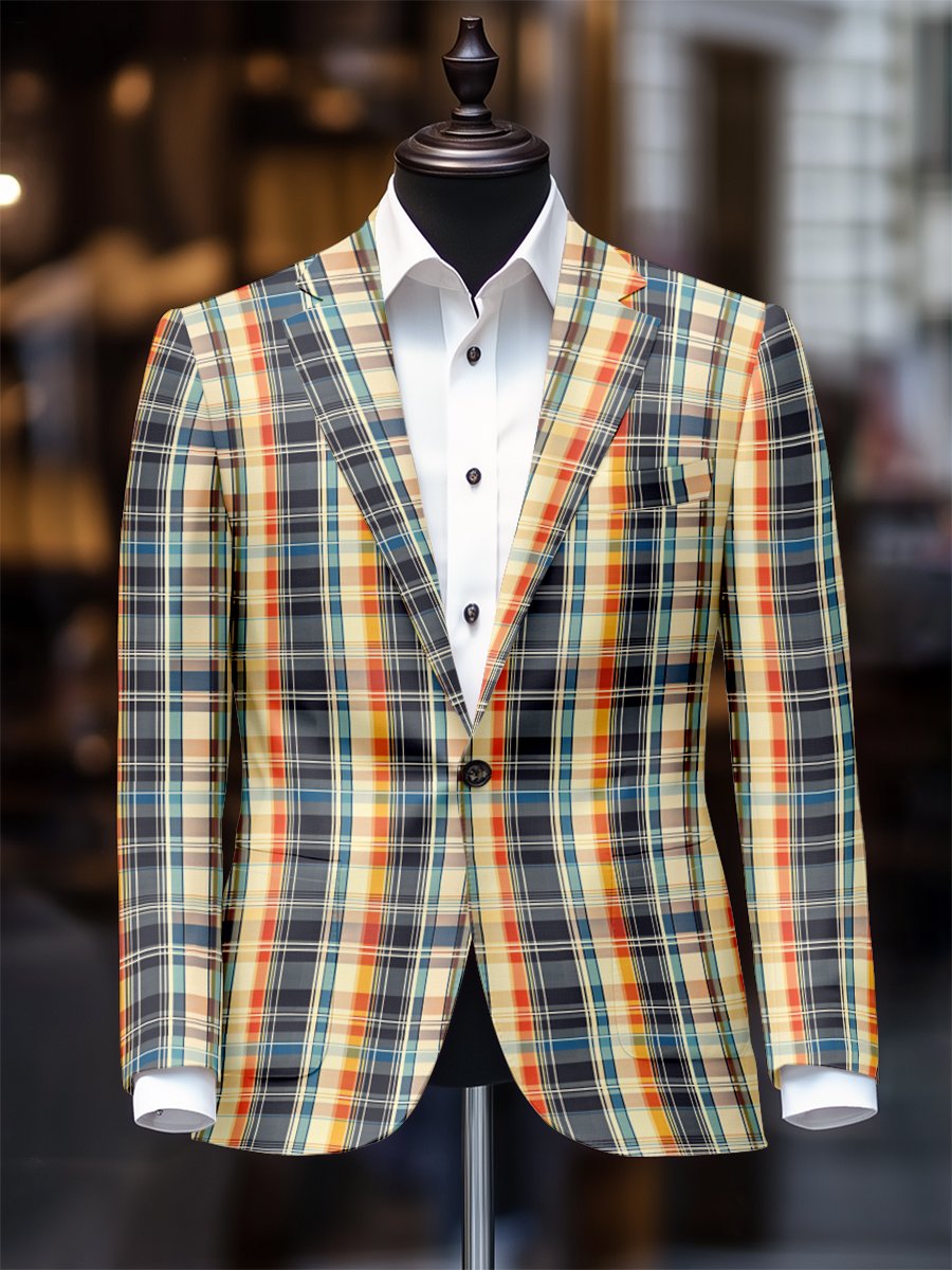 Men's Stylish Plaid One Button Suit Collar Blazer