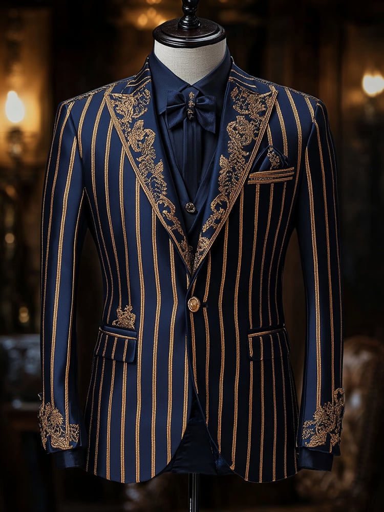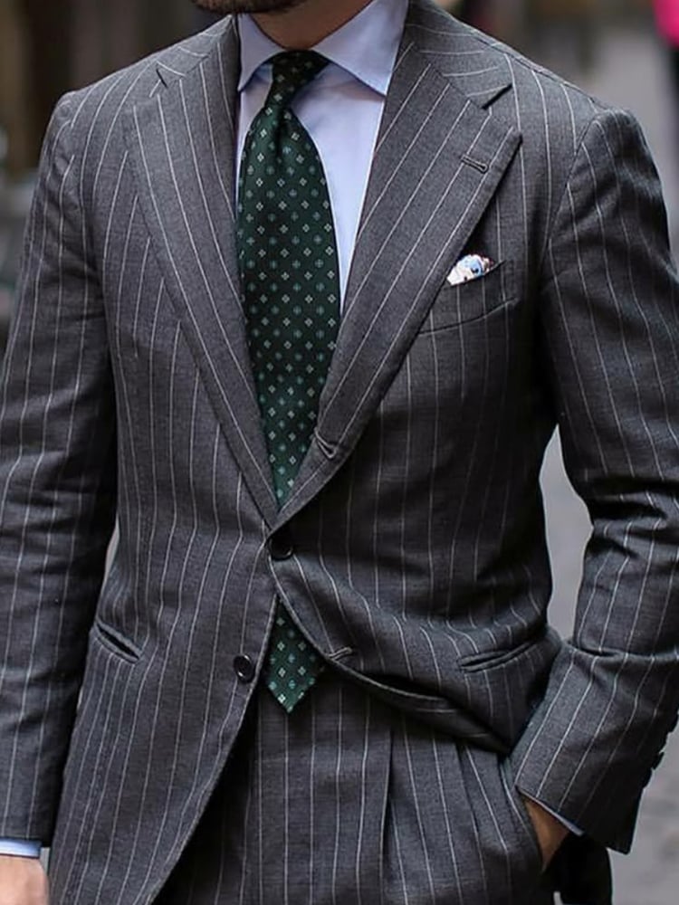 Men's Retro Single Breasted Striped Gentleman Business Suit Jacket