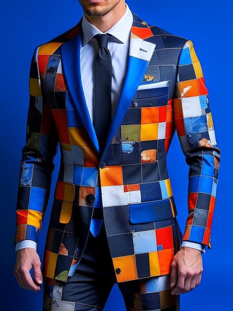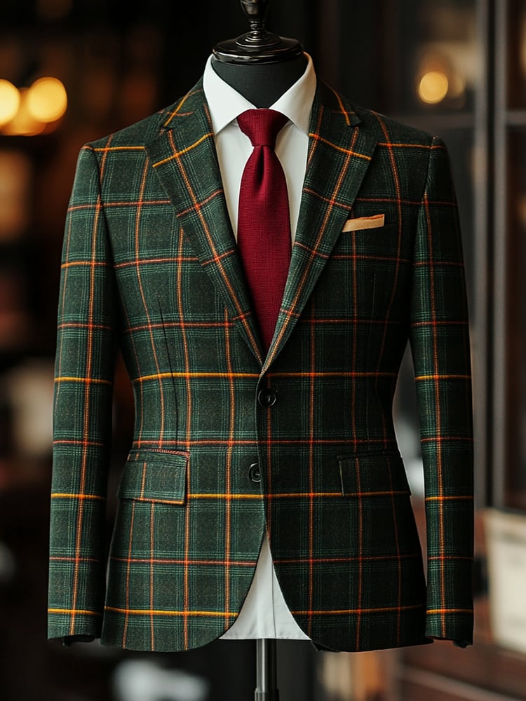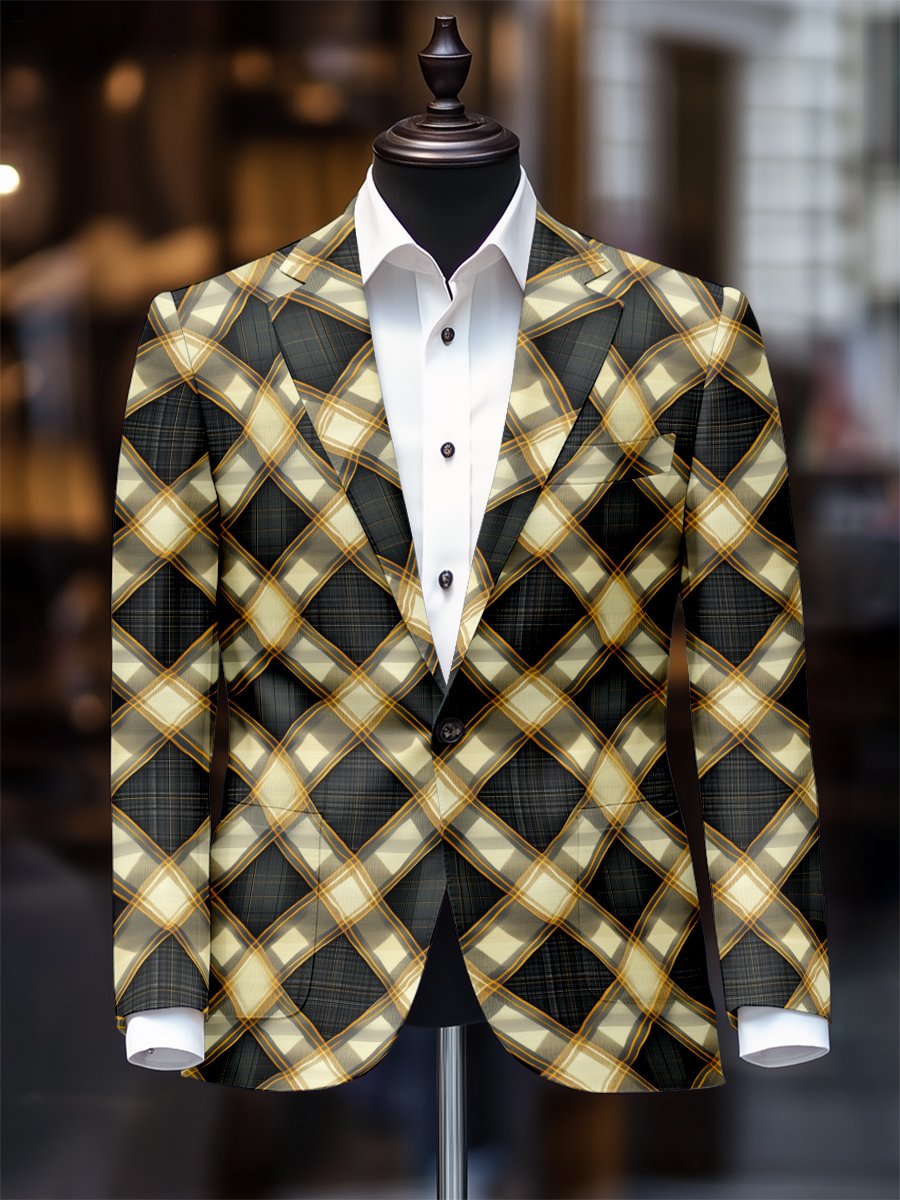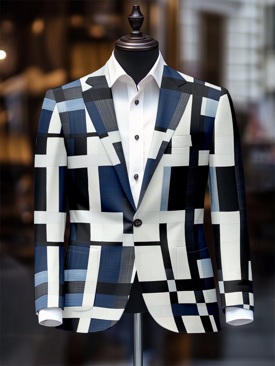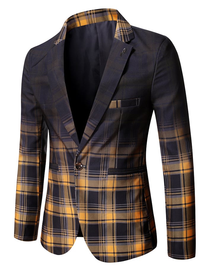 Checkered Contrasting Color Gentleman Business Casual Slim Fitting Suit Jacket