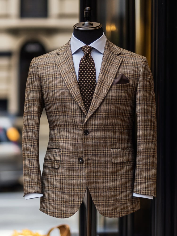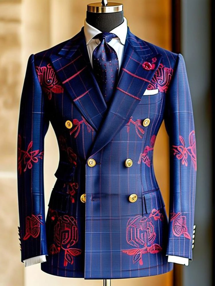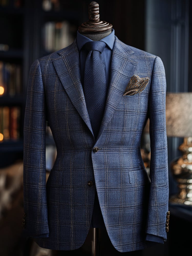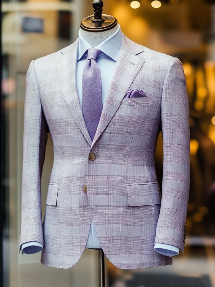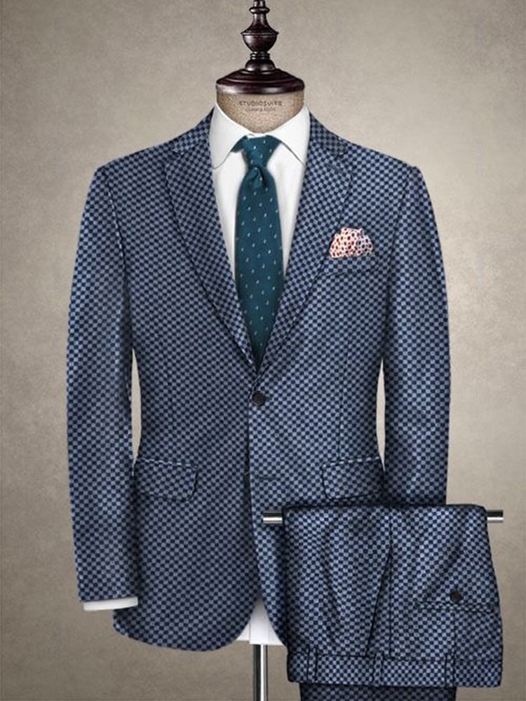 Checkered Contrasting Color Gentleman Business Casual Slim Fitting Suit Jacket