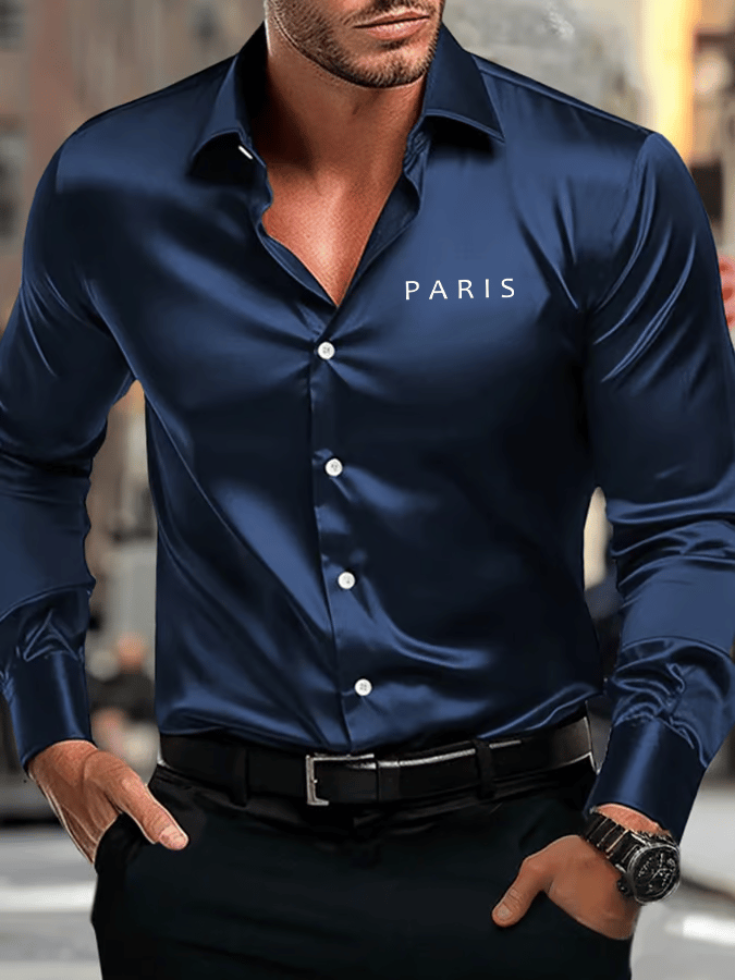 Men's Vintage Business Casual Printed Satin Long Sleeve Shirt