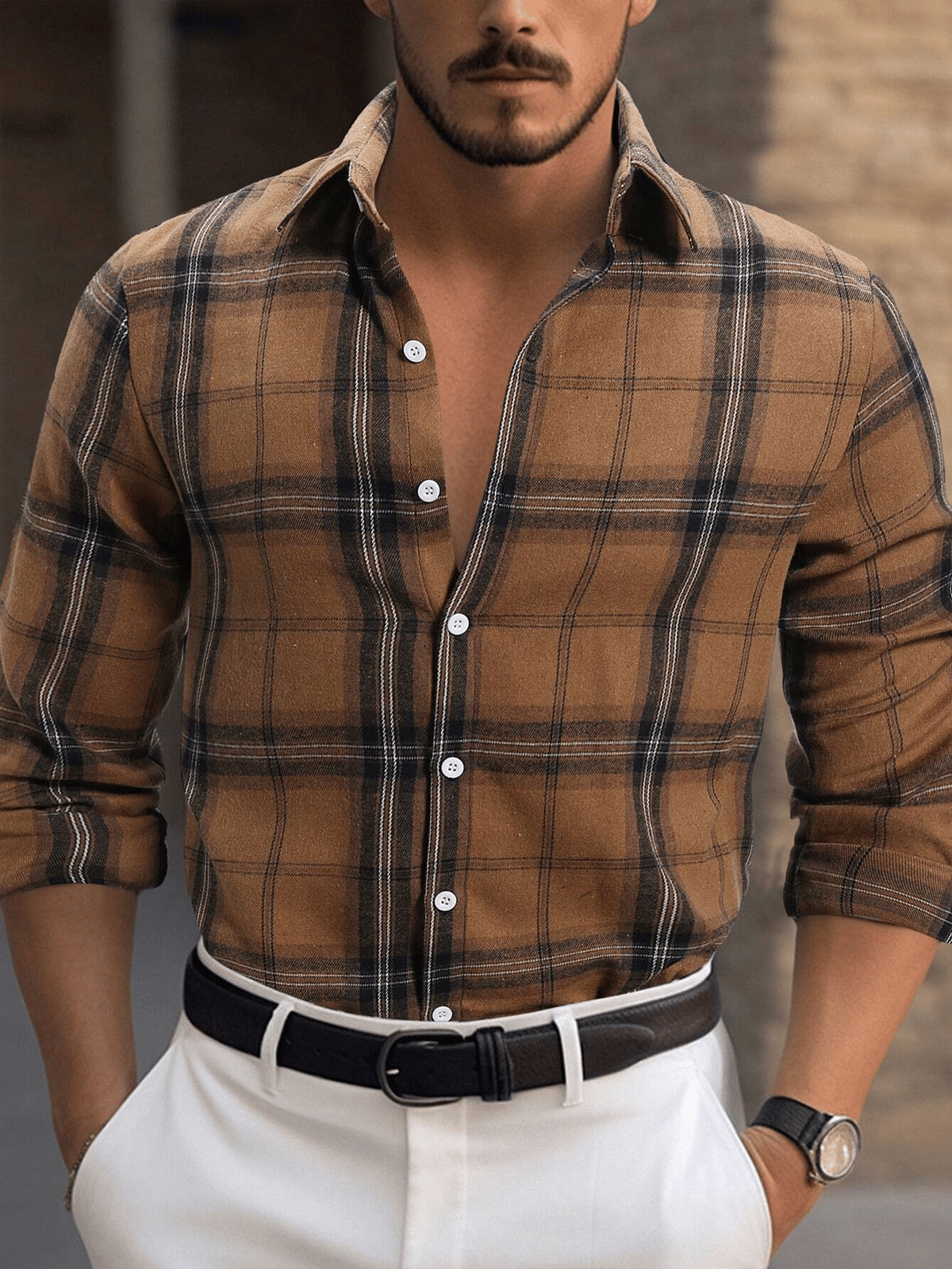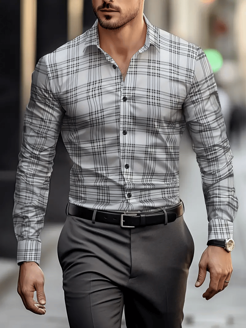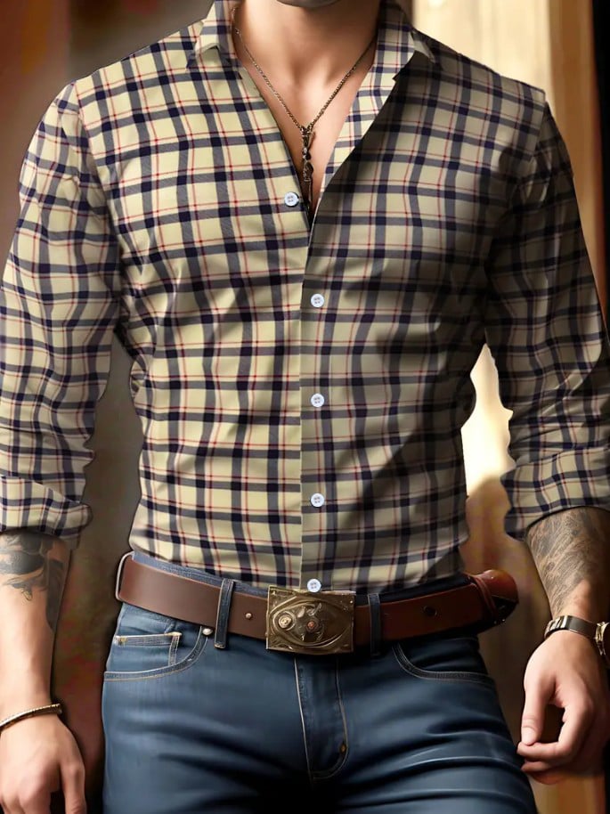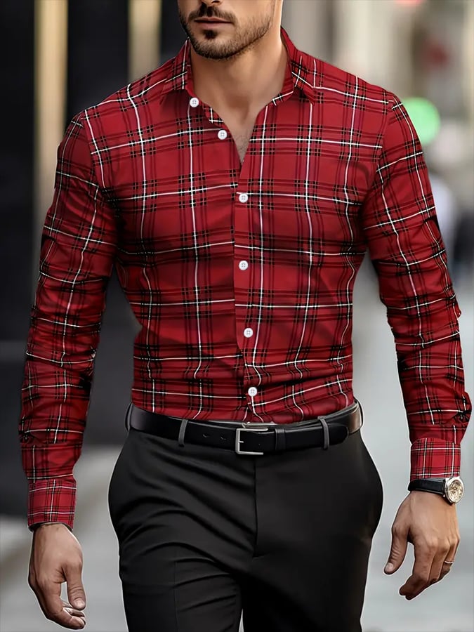 Men's Plaid Design Pocket Business Casual Long Sleeve Shirt