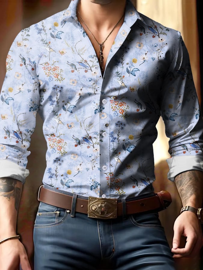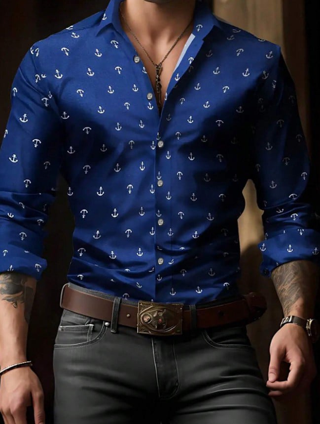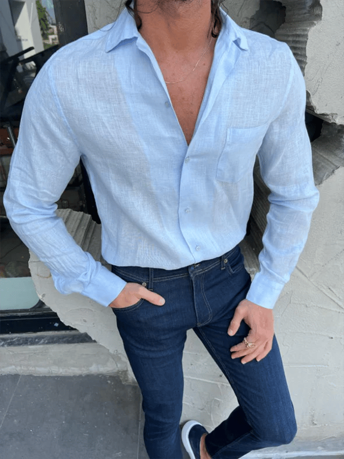 Men's Solid Color Design Business Casual Long Sleeve Shirt