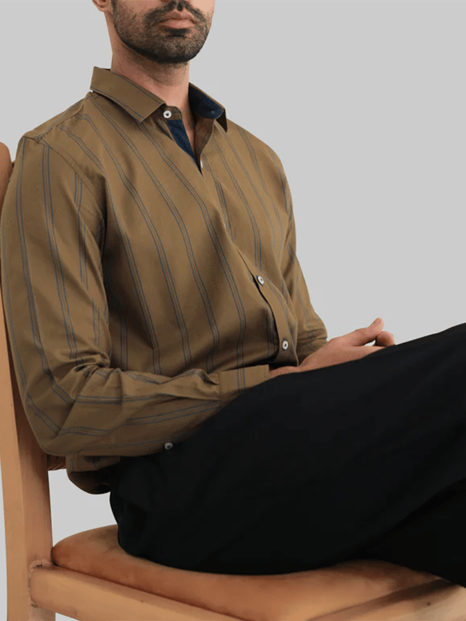 Men's Business Casual Striped Long Sleeve Shirt