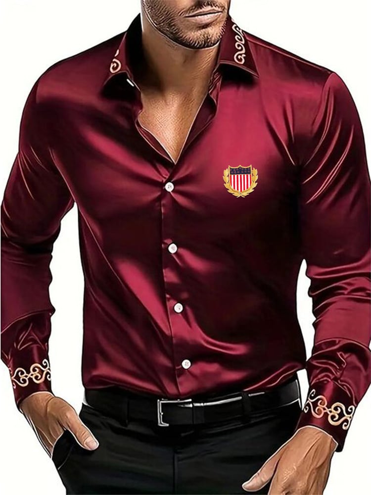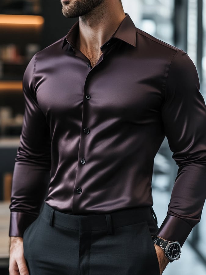 Men's Fashion Business Luxury Satin Long Sleeve Shirt