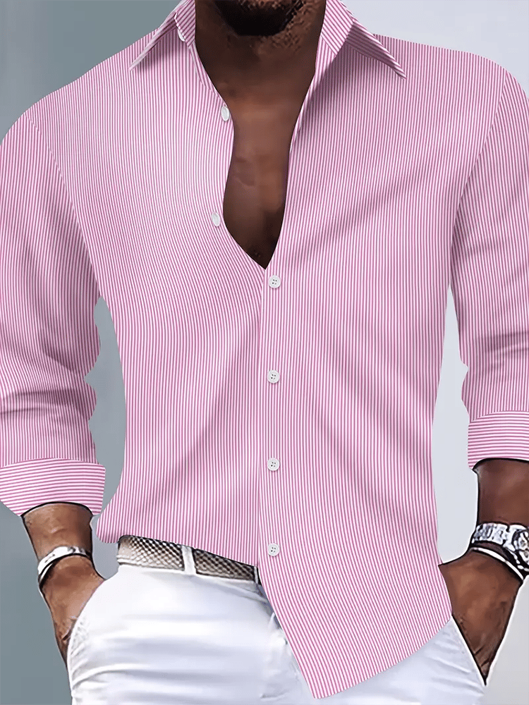 Men's Stripe Print Business Long Sleeve Shirt