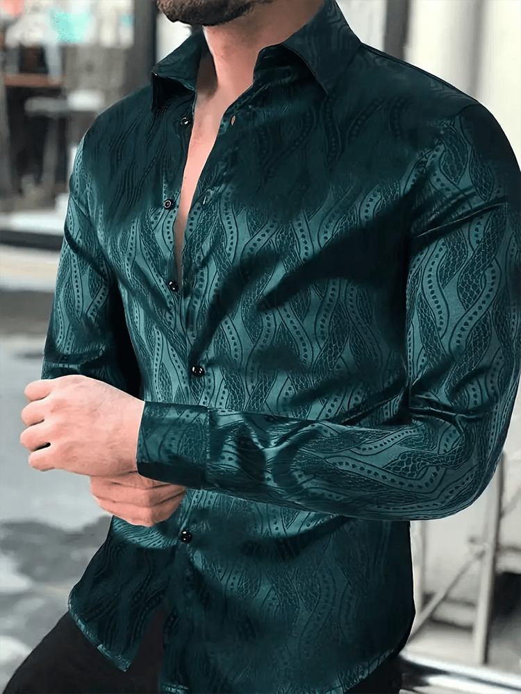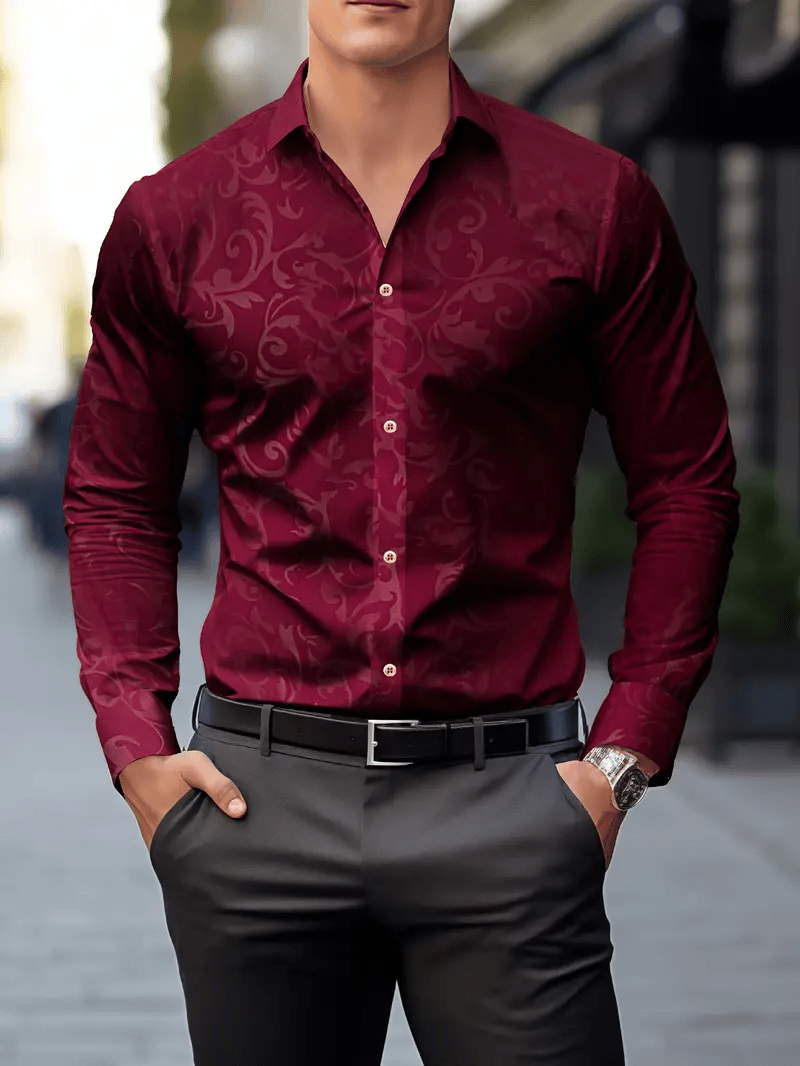 Men's Fashion Print Classic Business Long Sleeve Shirt