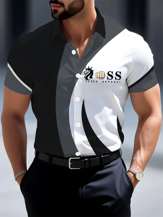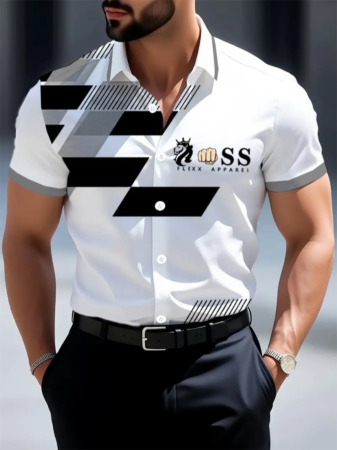 Men's Retro Letter Design Printed Business Short Sleeve Shirt