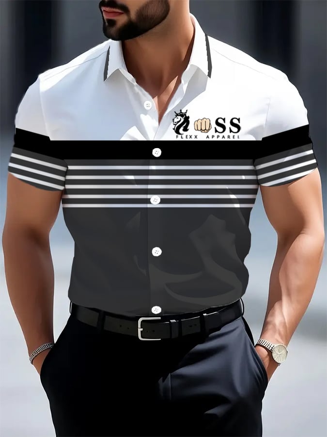 Men's Business Stripe Printed Pocket Short Sleeve Shirt