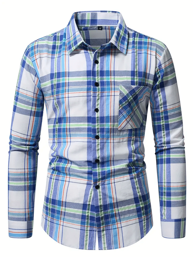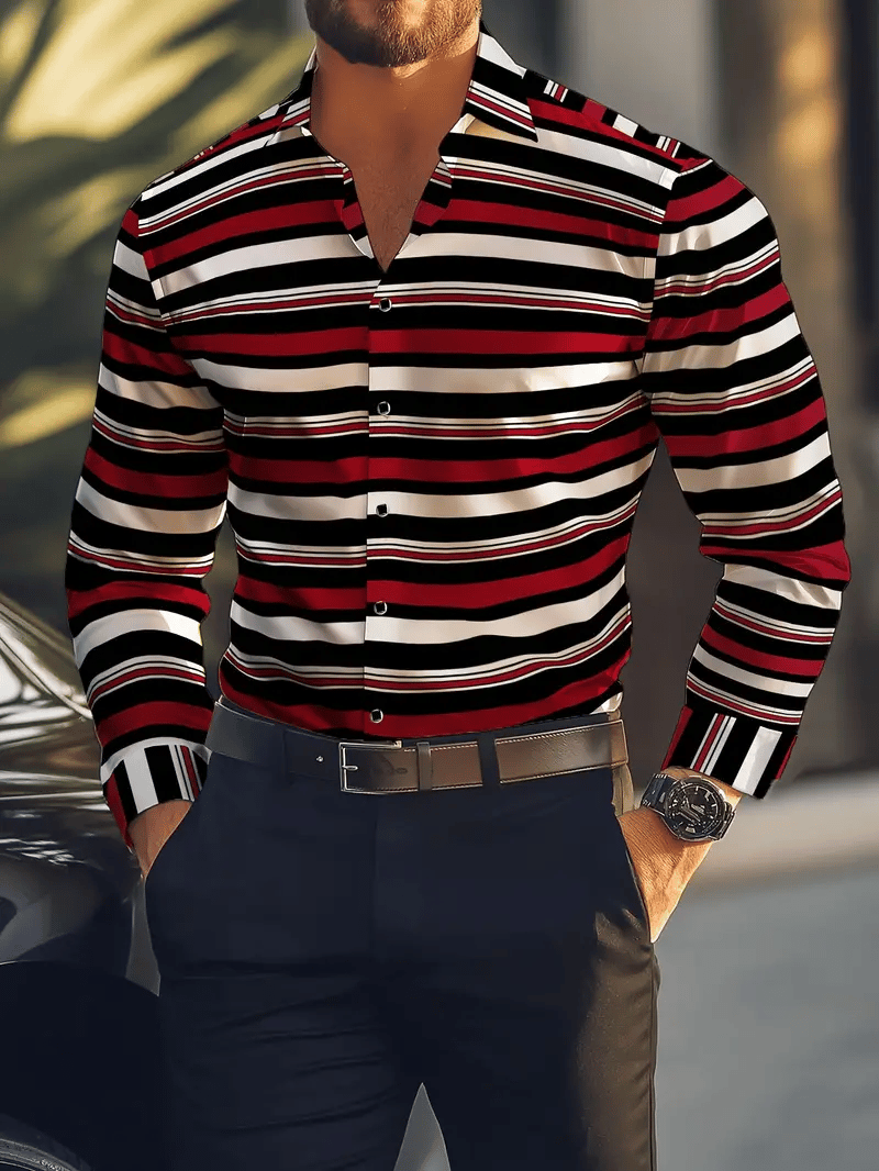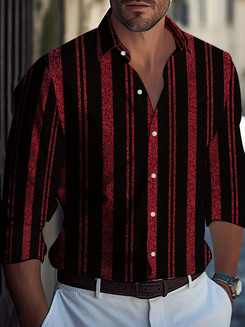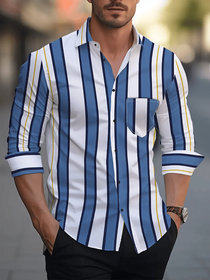 Men's Casual Striped Long Sleeve Lapel Shirt
