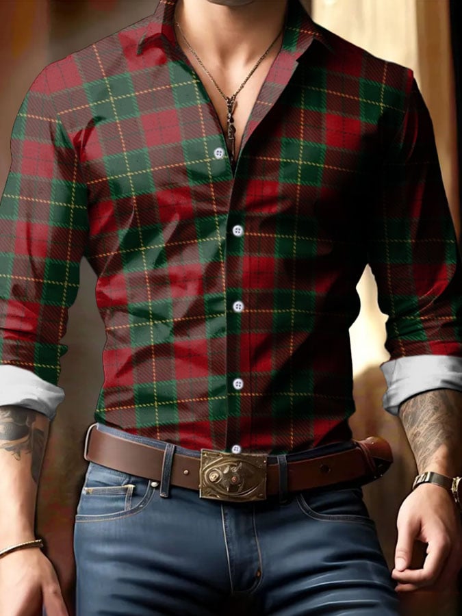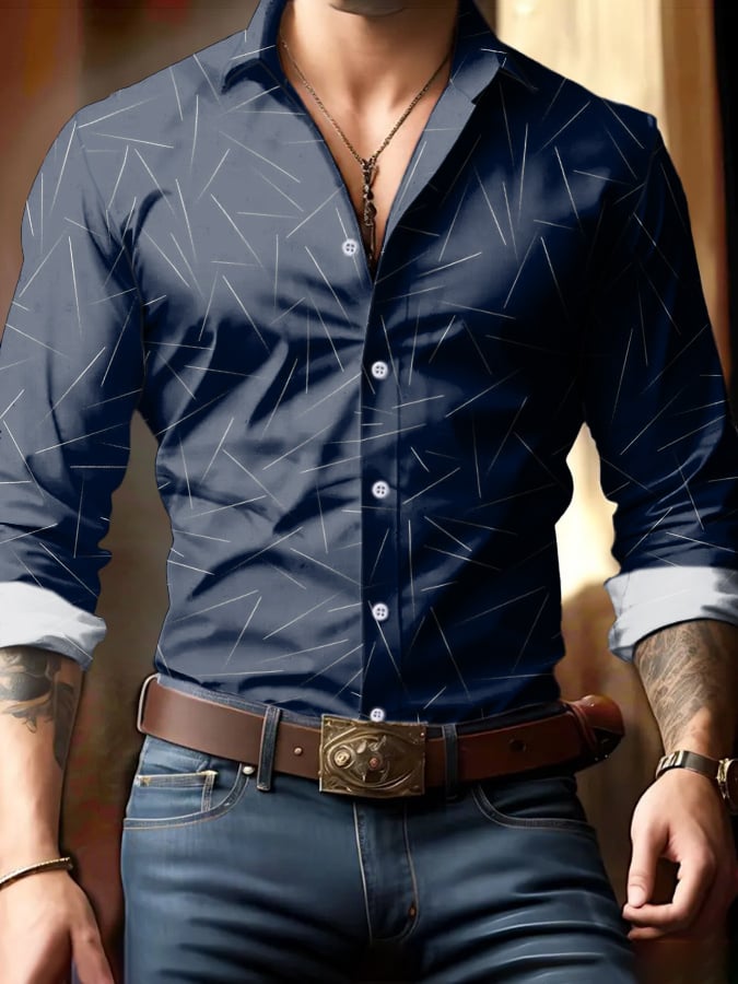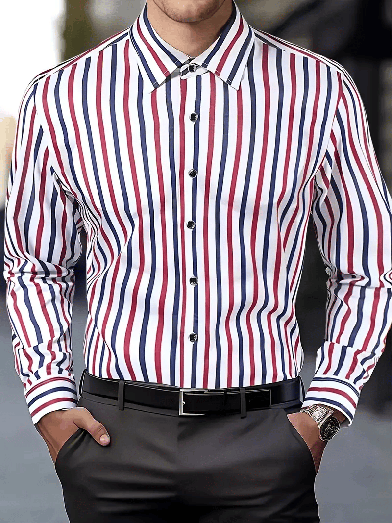 Men's Street Style Business Striped Printed Long Sleeve Shirt