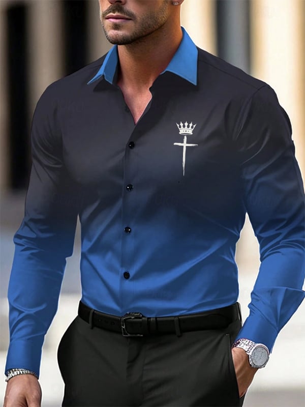 Men's Casual Solid Color Faith Long Sleeve Lapel Shirt