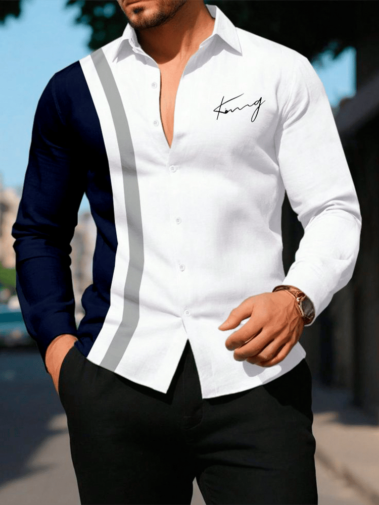 Men's Casual Striped Letter Printed Long Sleeve Shirt