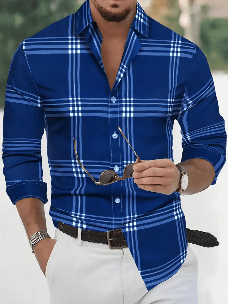 Men's Plaid Business Long Sleeve Shirt