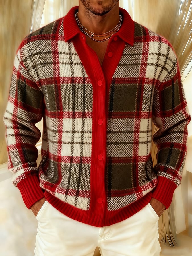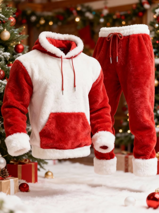 Men's Christmas Warm Plush Color-Blocked Casual Suit