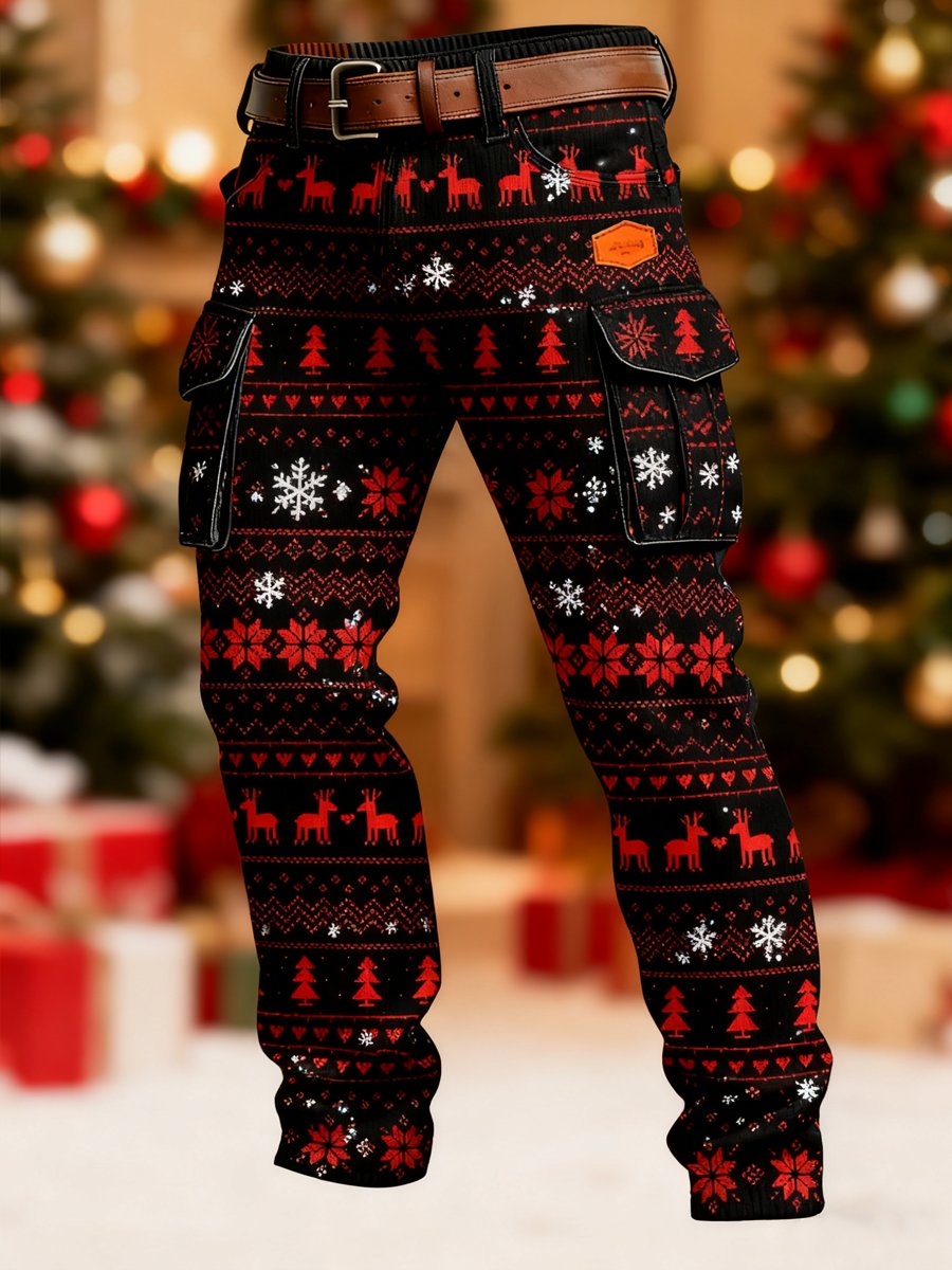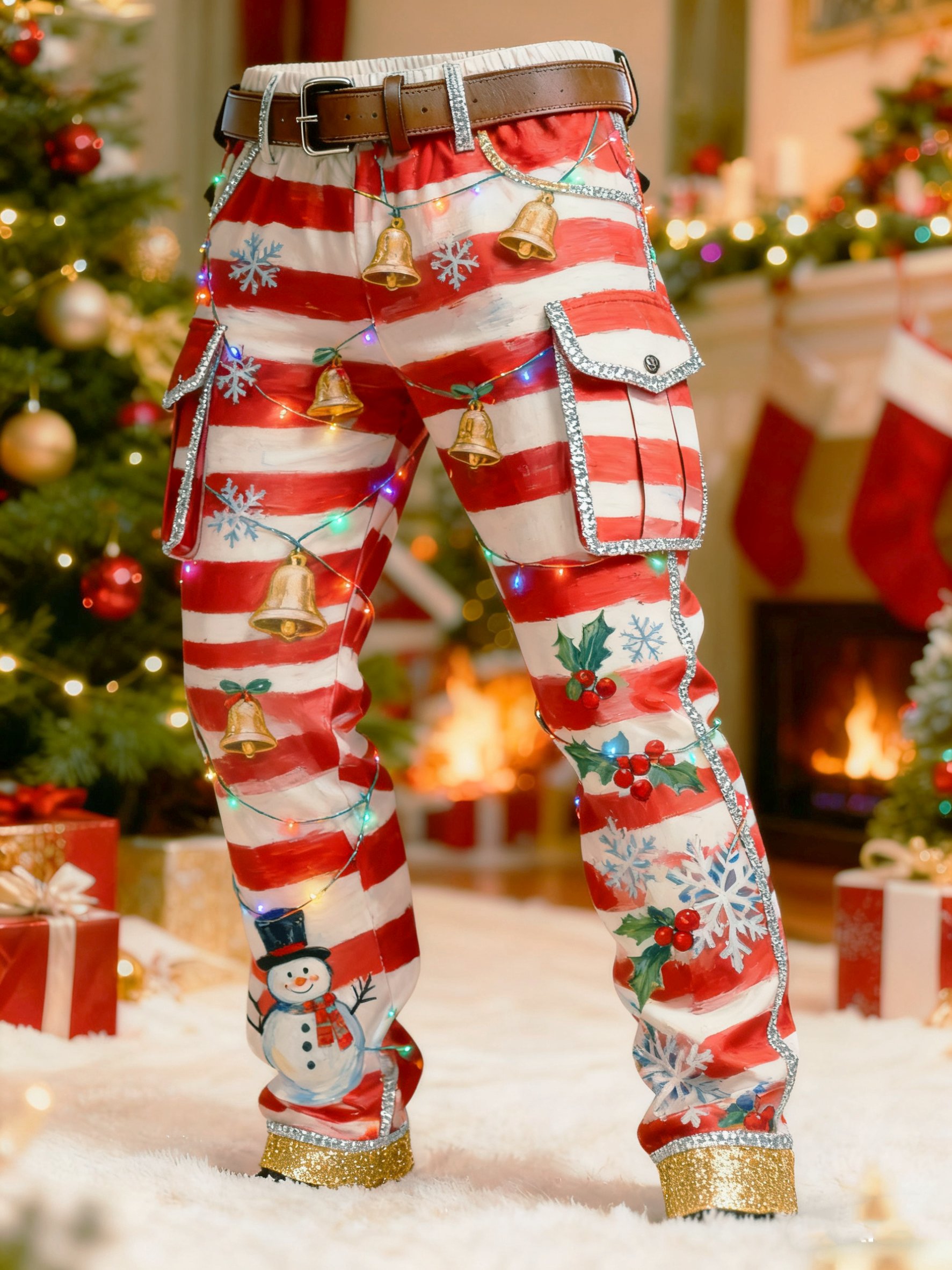 Men's Christmas Lights Bells Santa Snowman Printed Cargo Pants