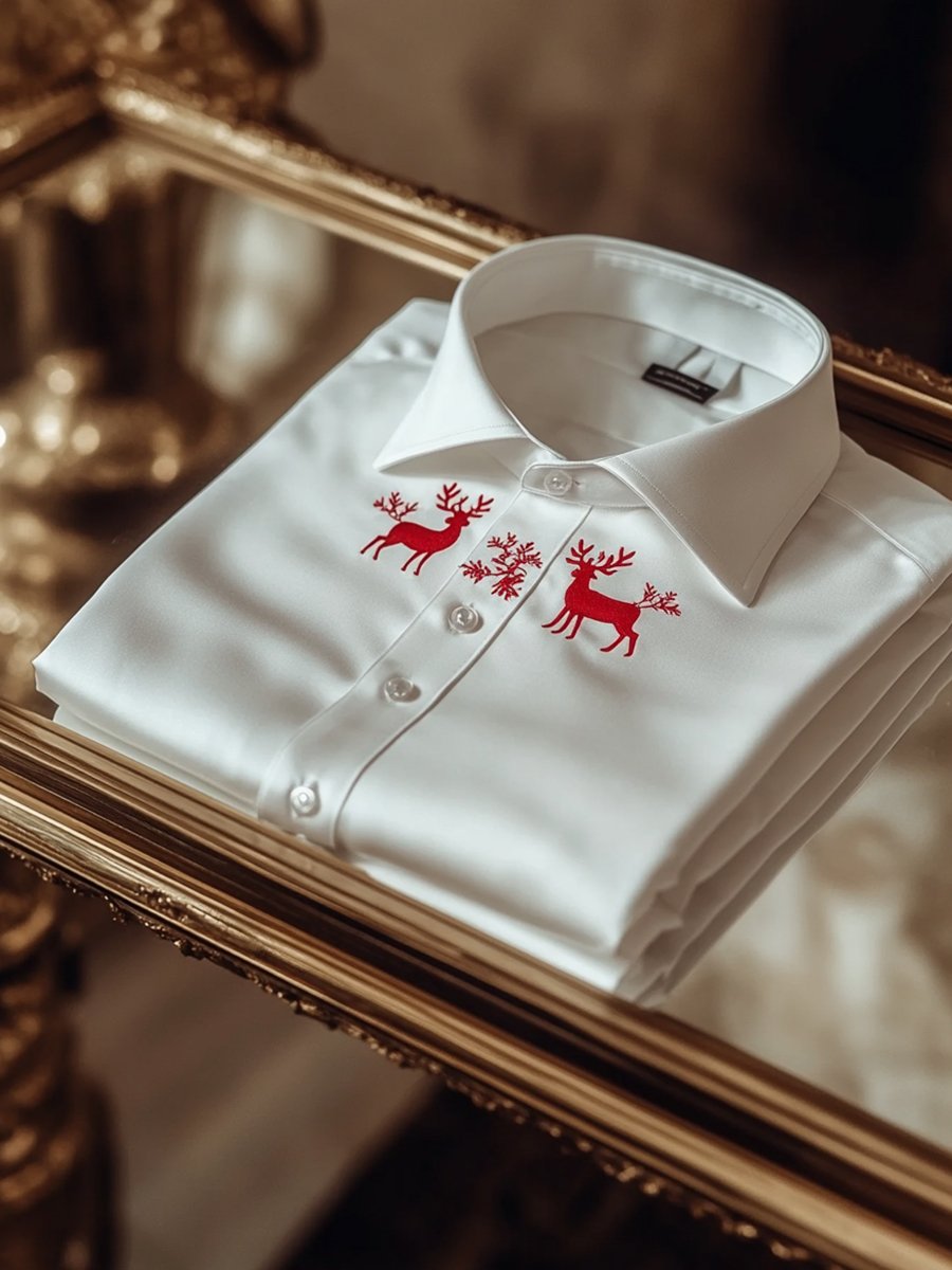 Men's Business Christmas Gift Elk Print Long Sleeve Shirt