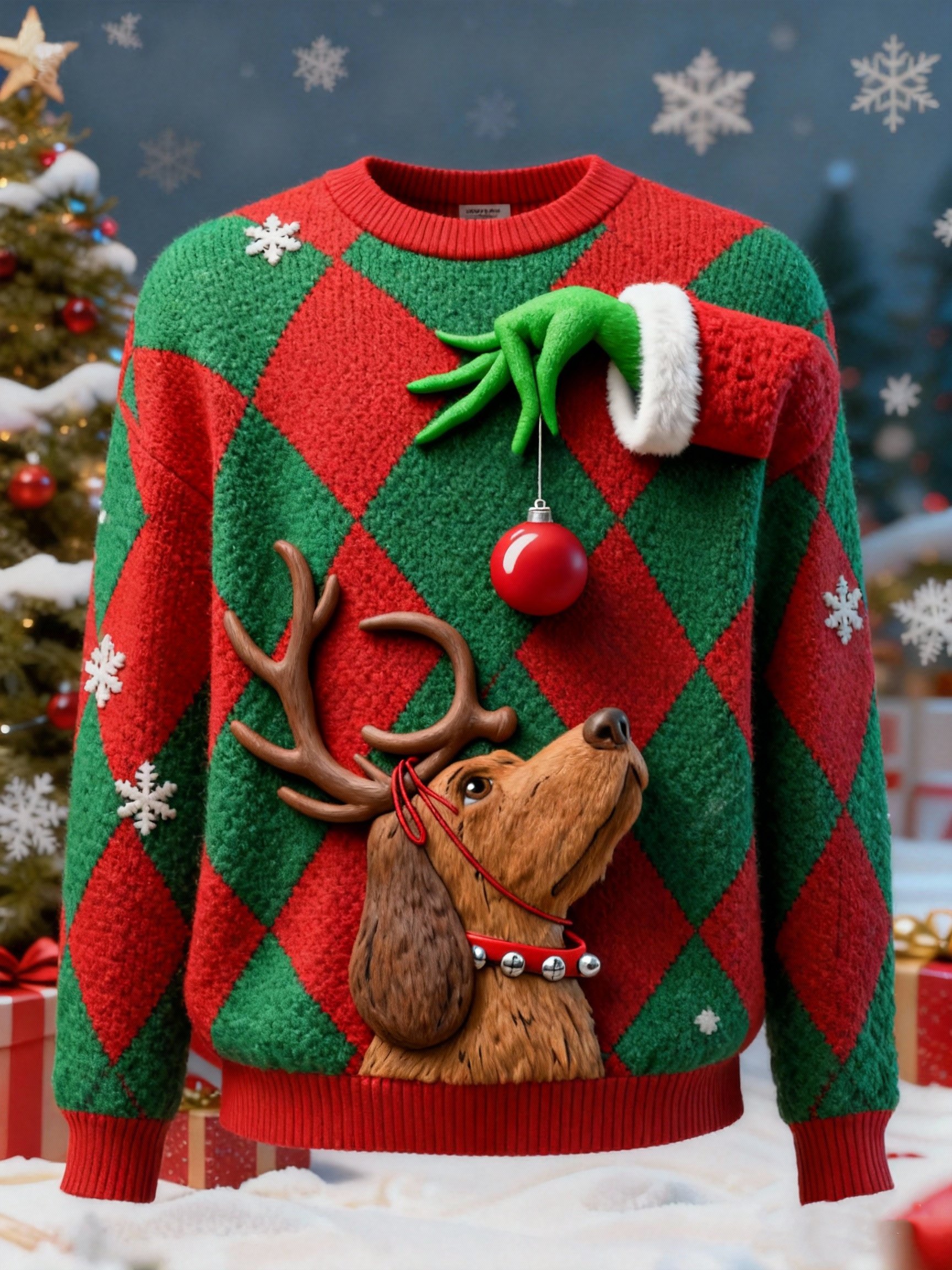 Men's Cartoon Print Ugly Christmas Santa Rudolph Reindeer Pullover Sweater