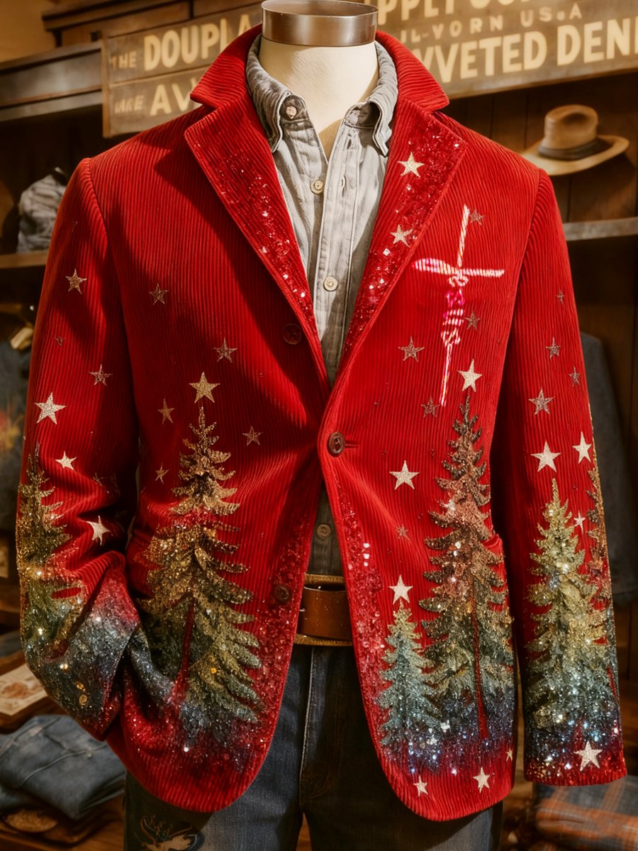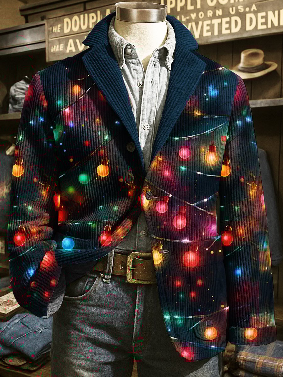 Men's Corduroy Christmas Lights Lapel Suit Jacket
