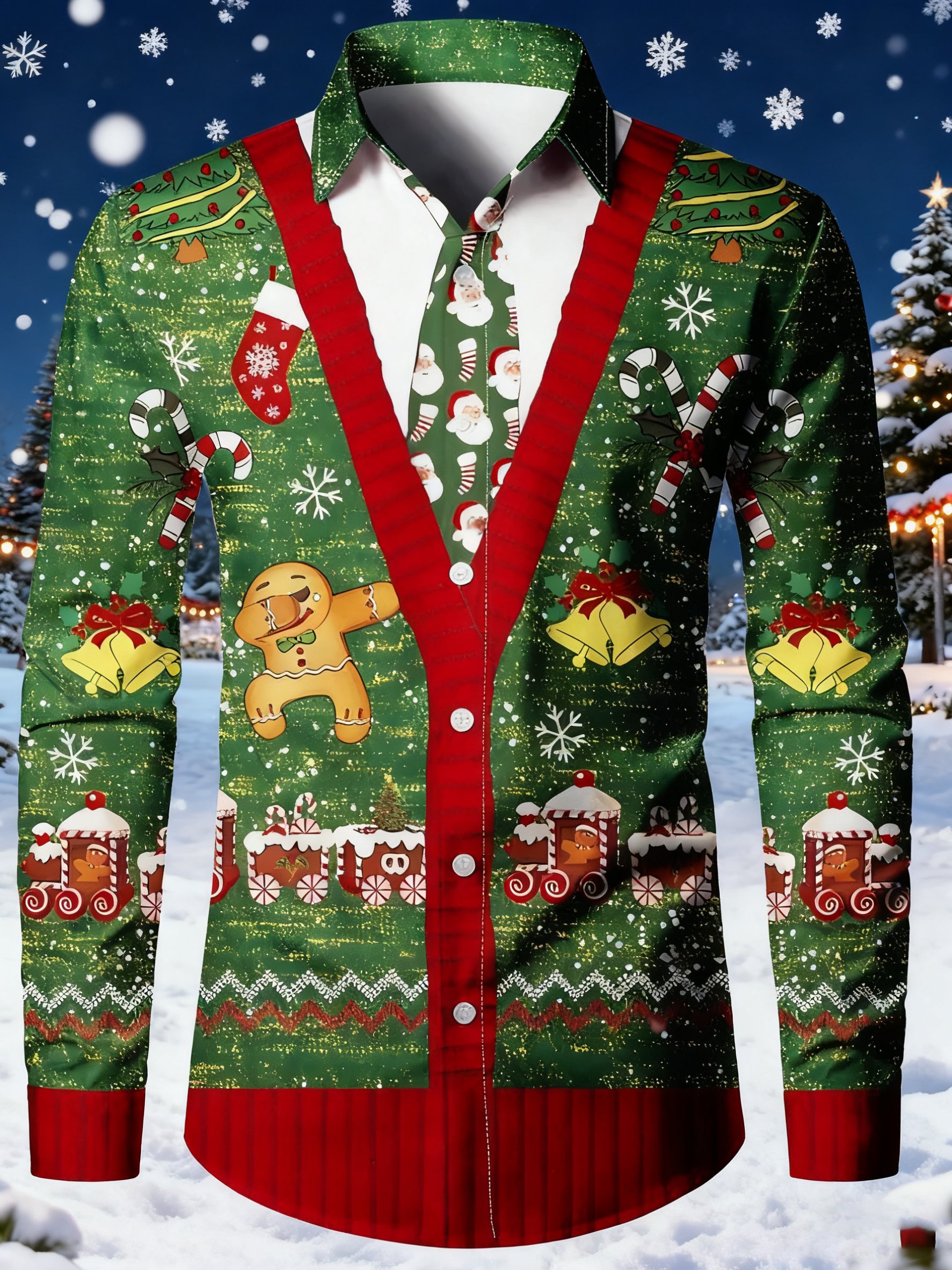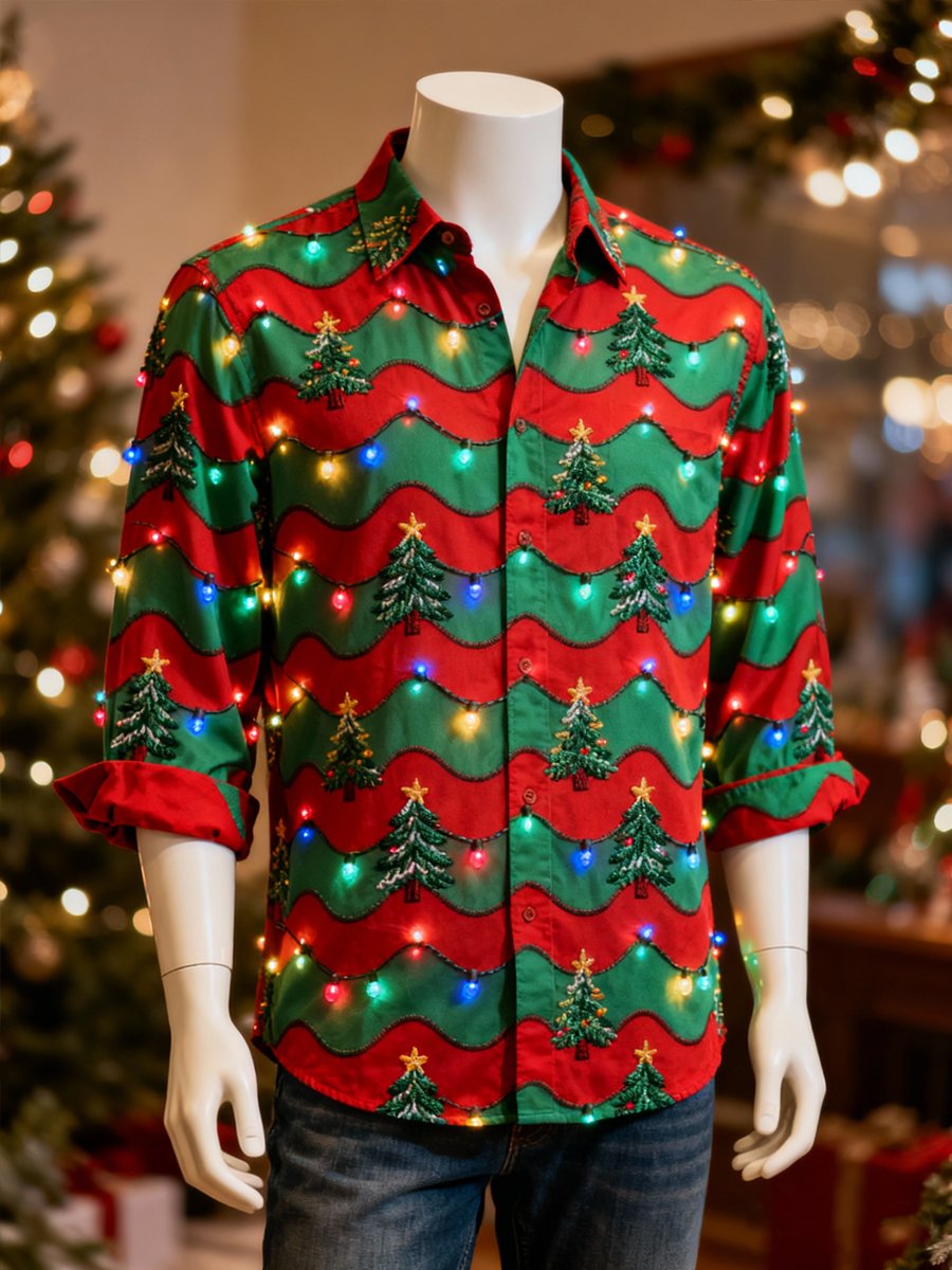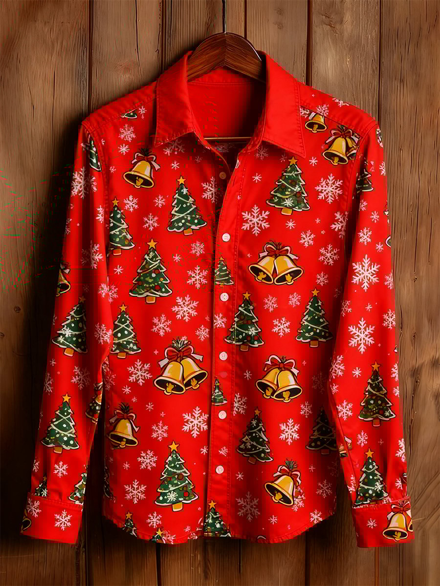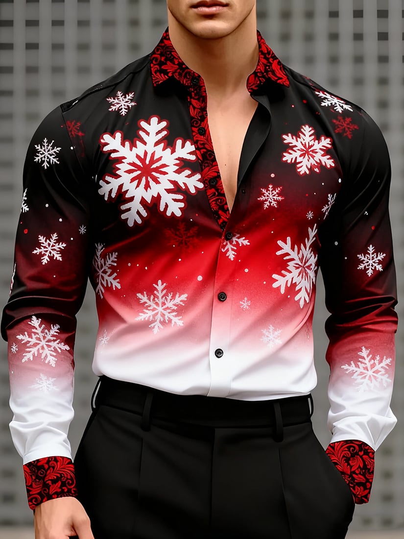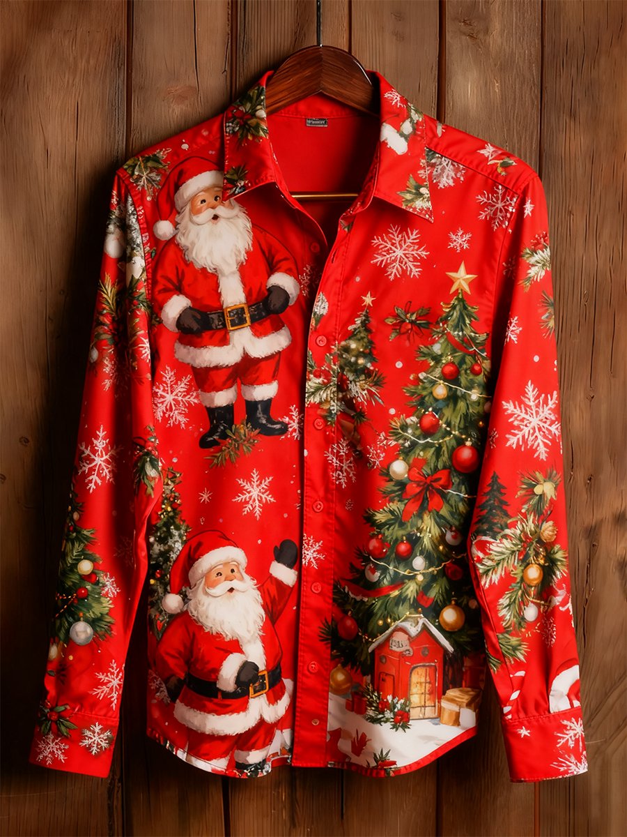 Men's Business Christmas Print Long-Sleeved Shirt