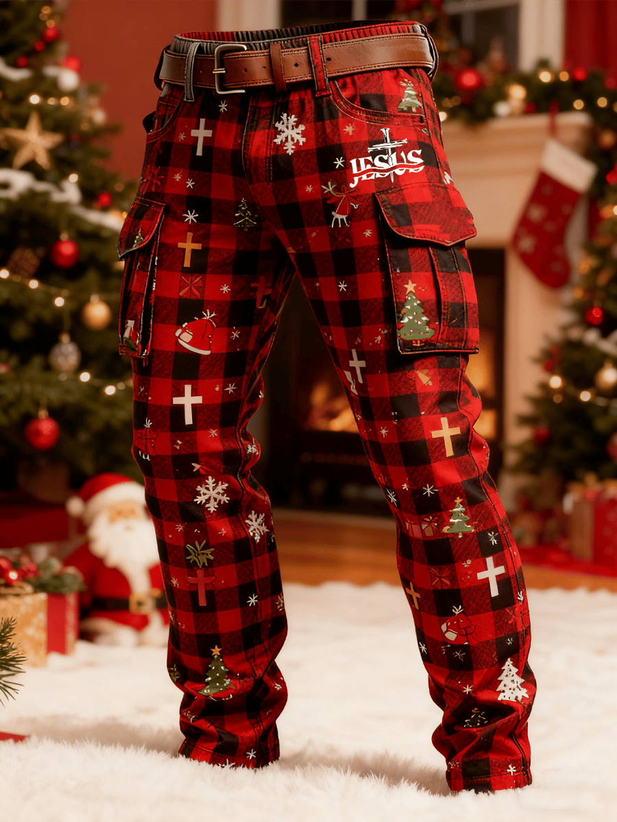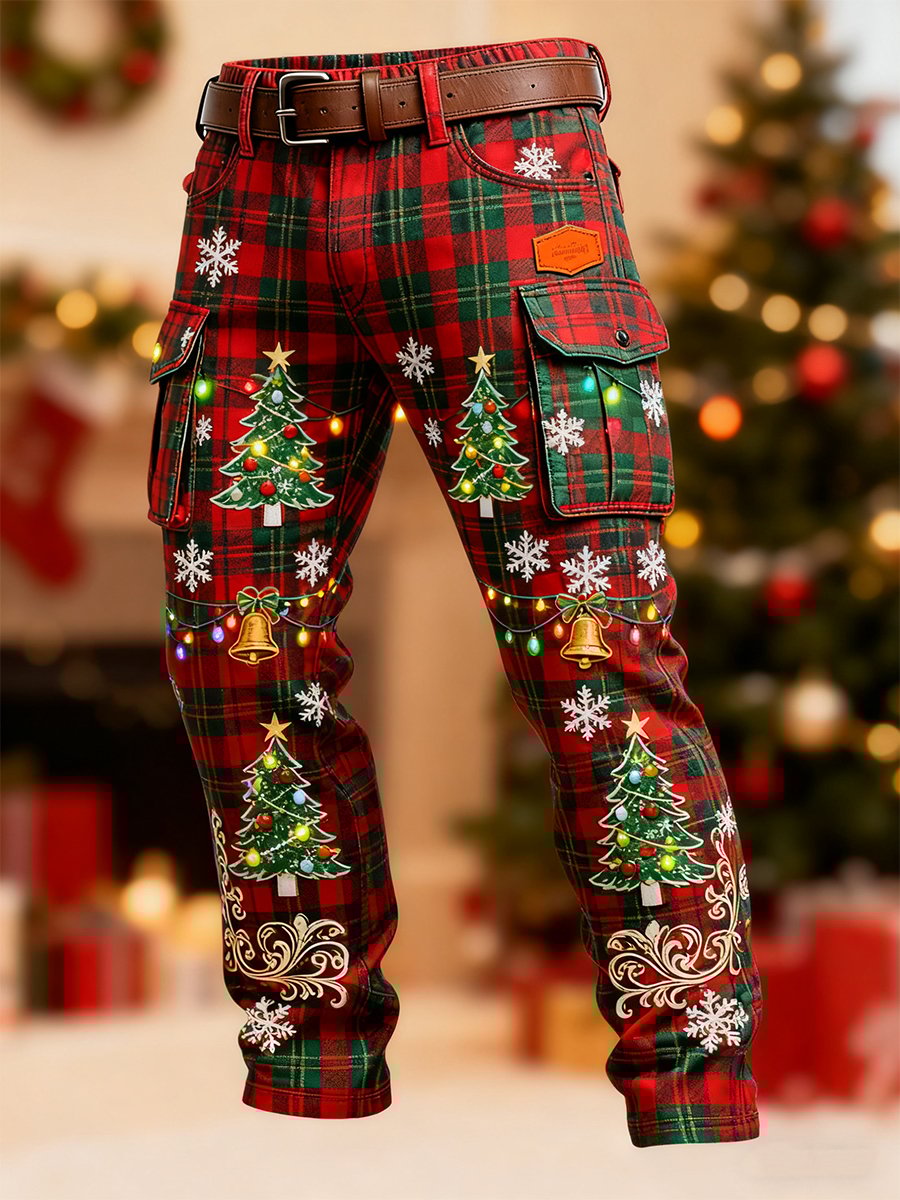 Men's Retro Christmas Evergreen Print Cargo Pants