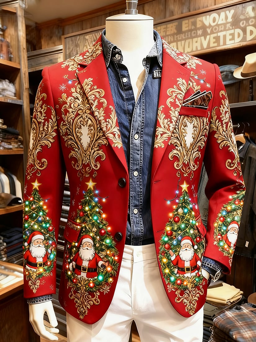 Men's Christmas Casual Print Large Pocket Blazers