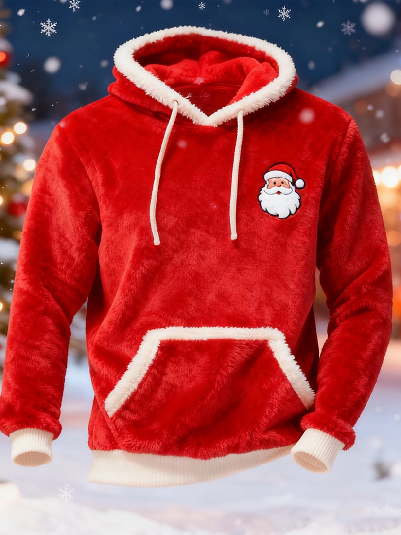 Men's Casual Christmas Comfortable Flannel Warm Hoodie