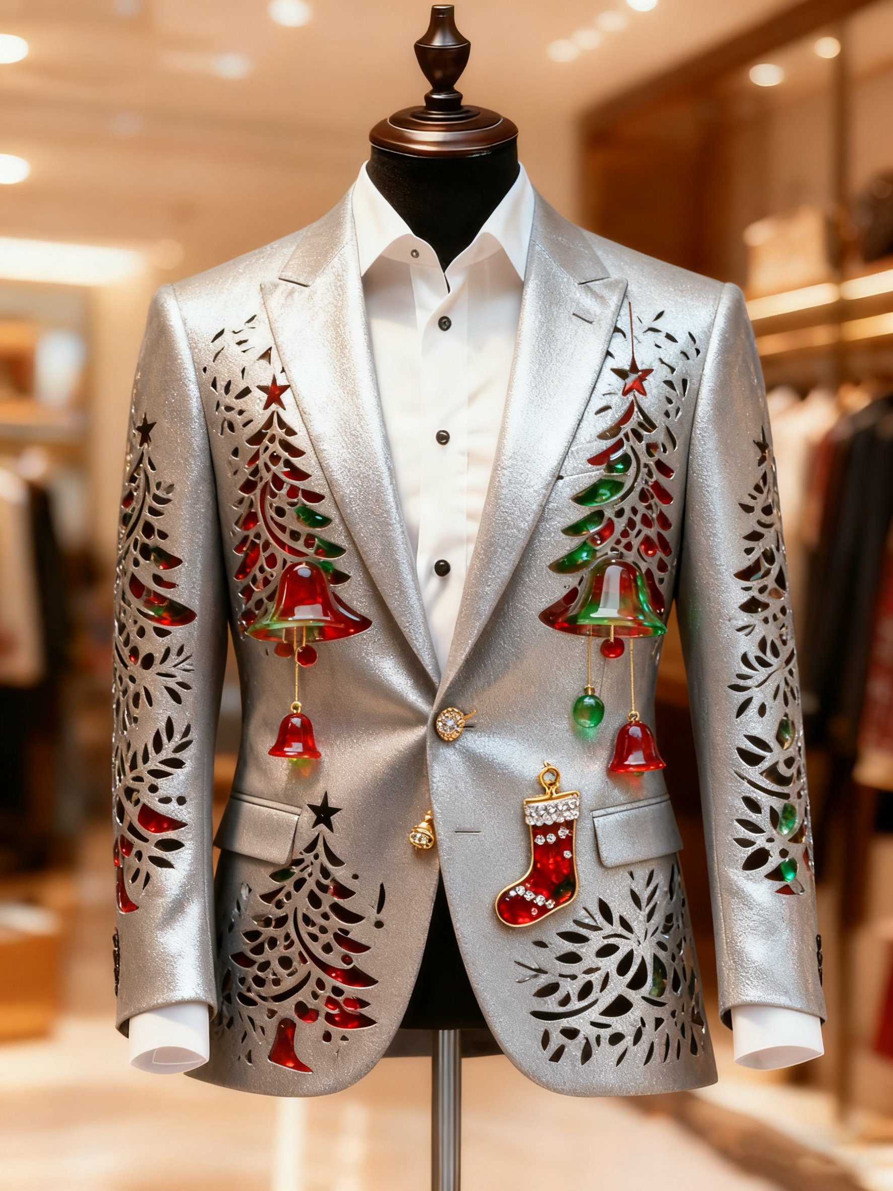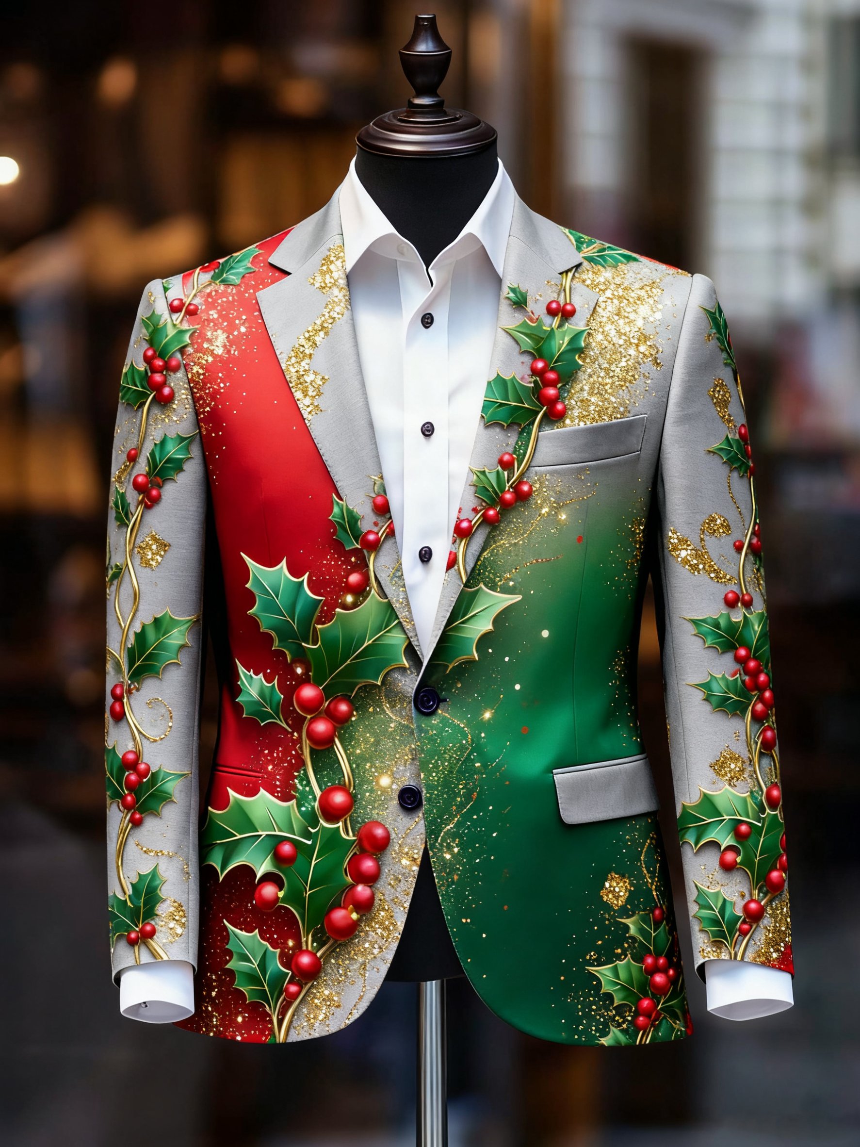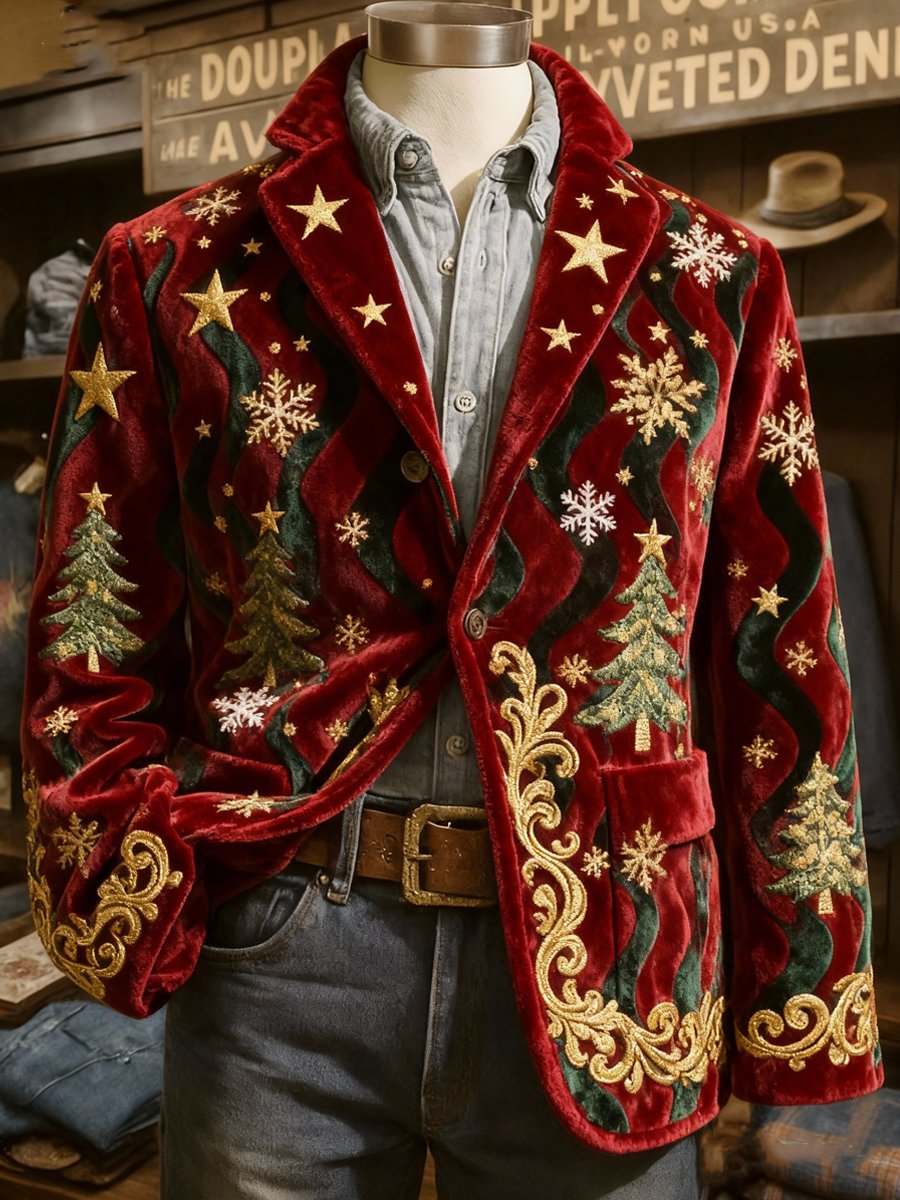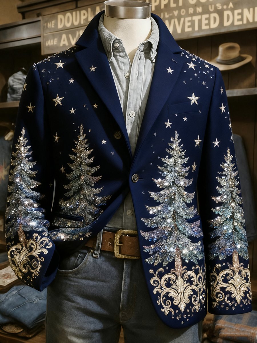 Men's Retro Christmas Evergreen Lapel Suit Jacket