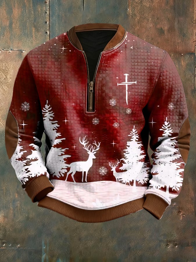 Men's Casual Christmas-themed Zipper Knit Sweatshirt