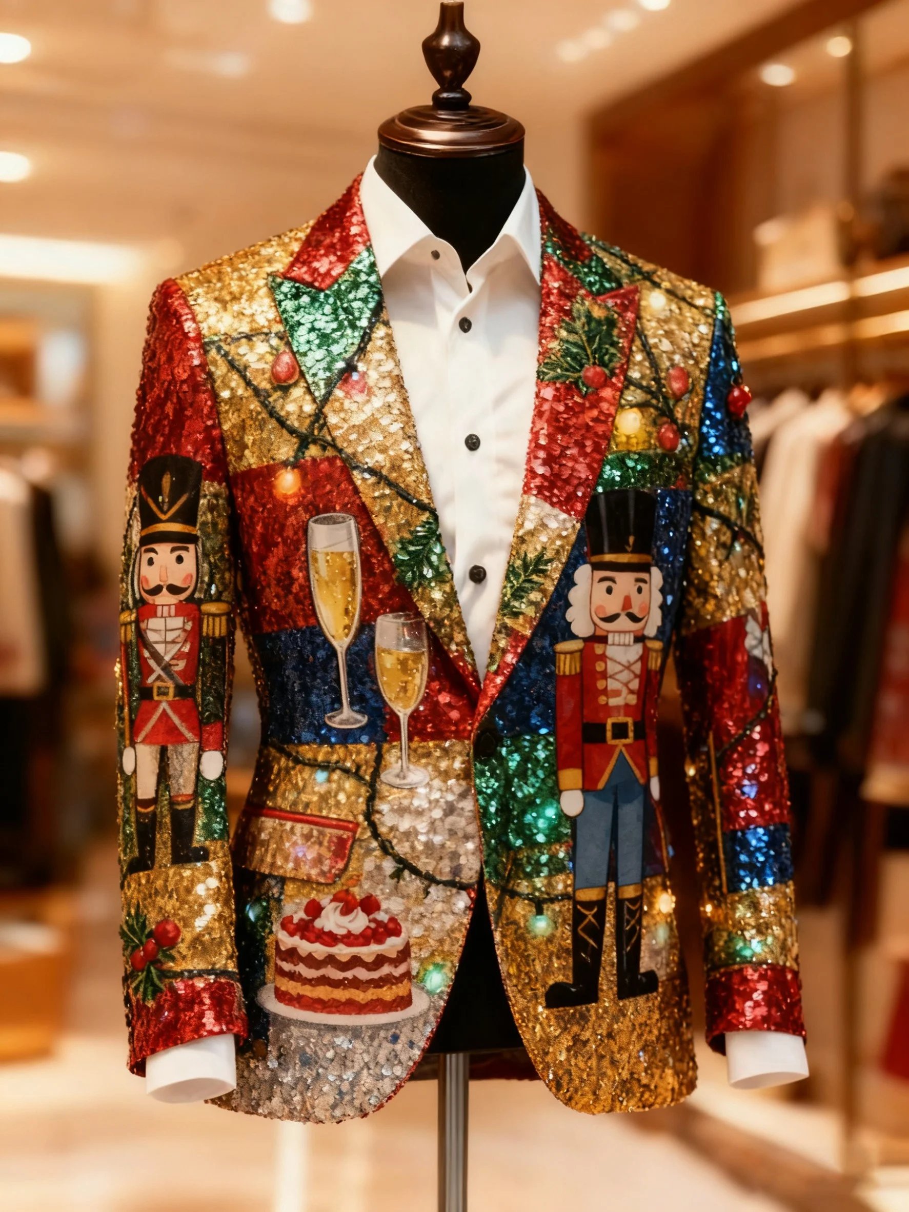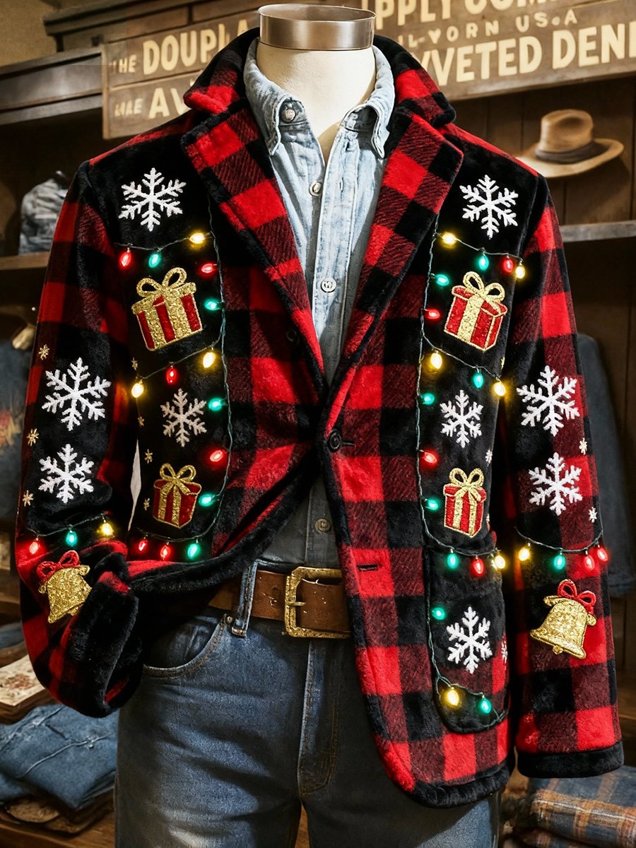 Men's Flannel Christmas Gift Lapel Suit Jacket