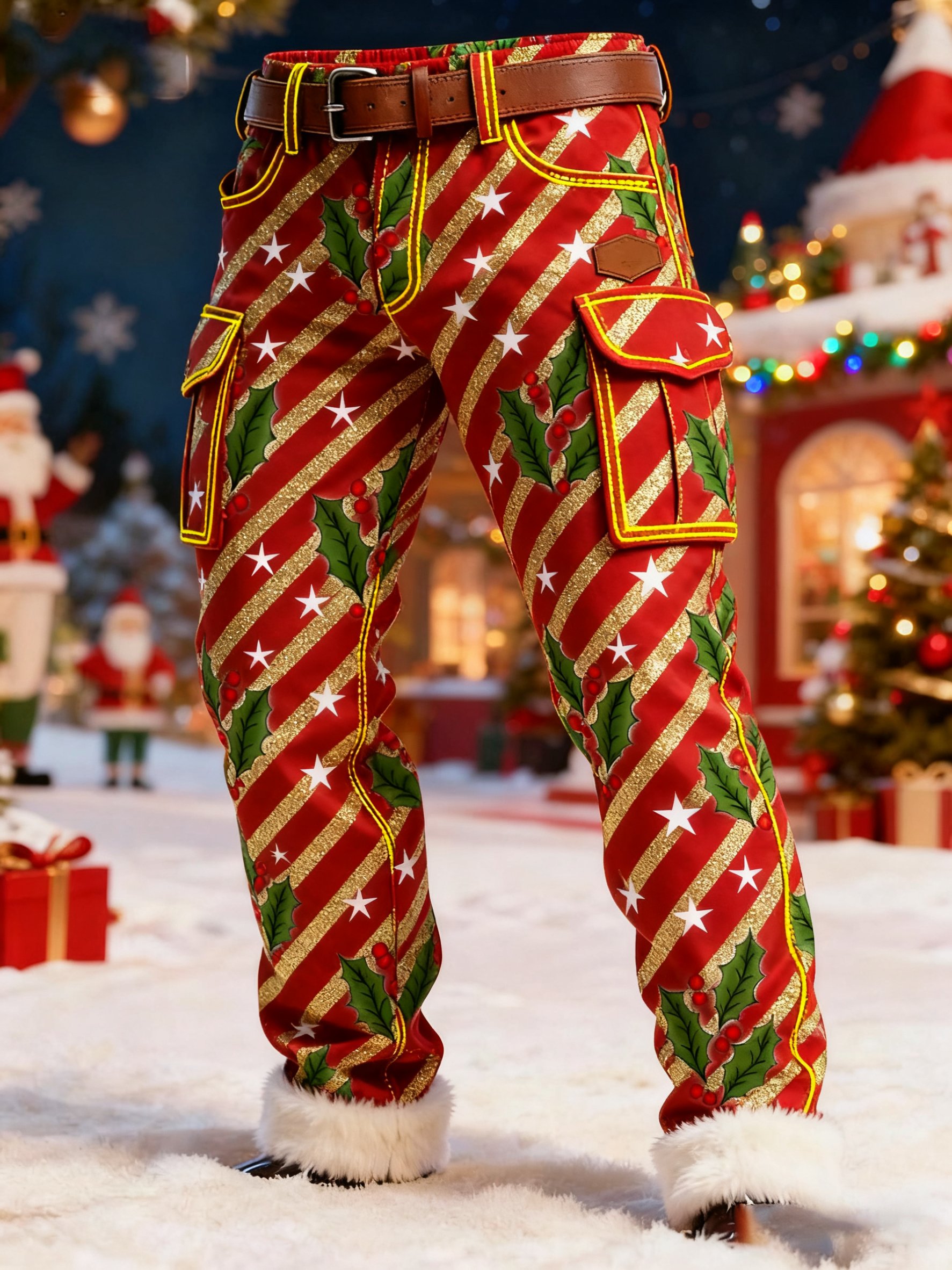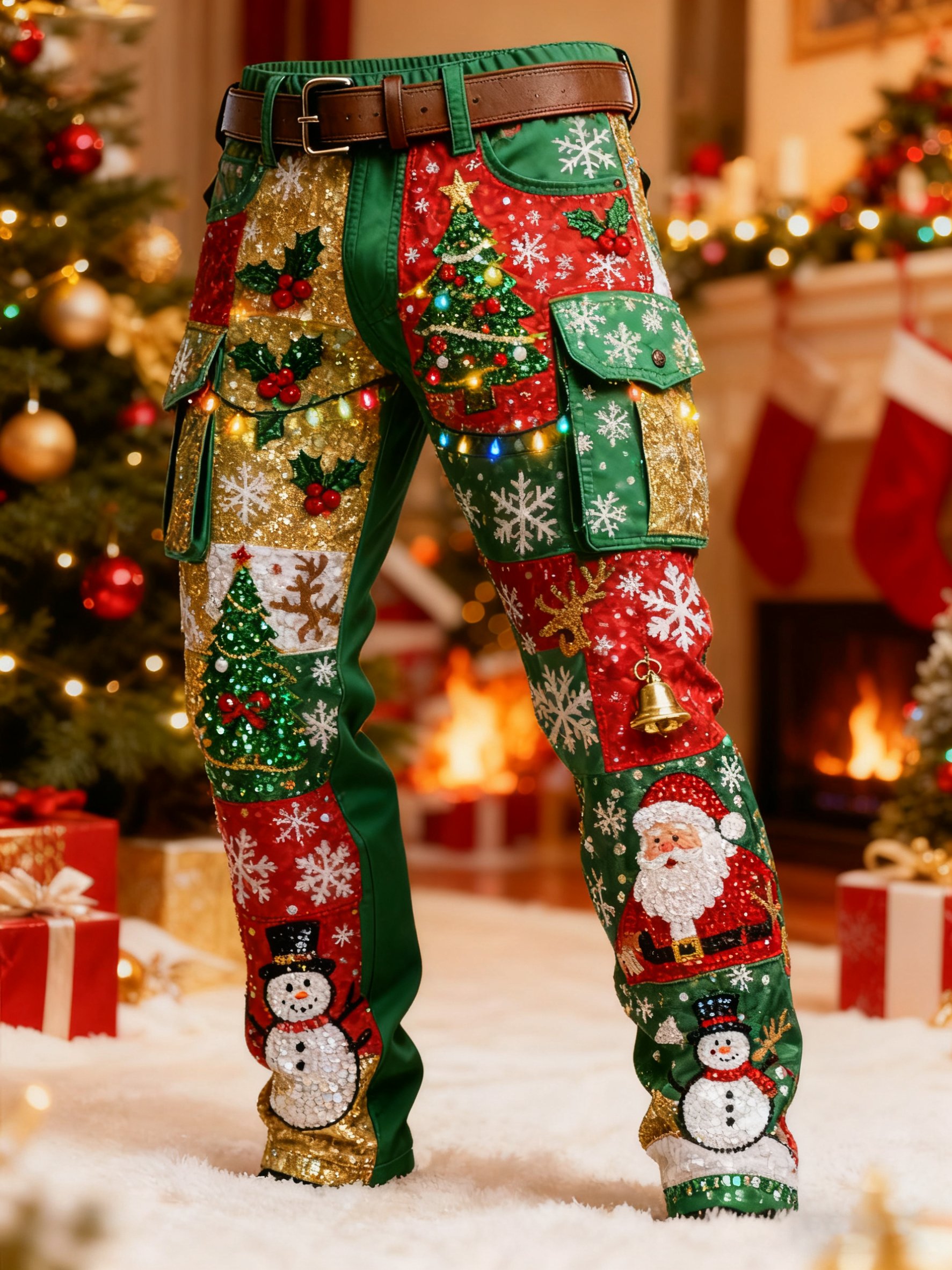 Men's Christmas Color Blocked Printed Cargo Pants