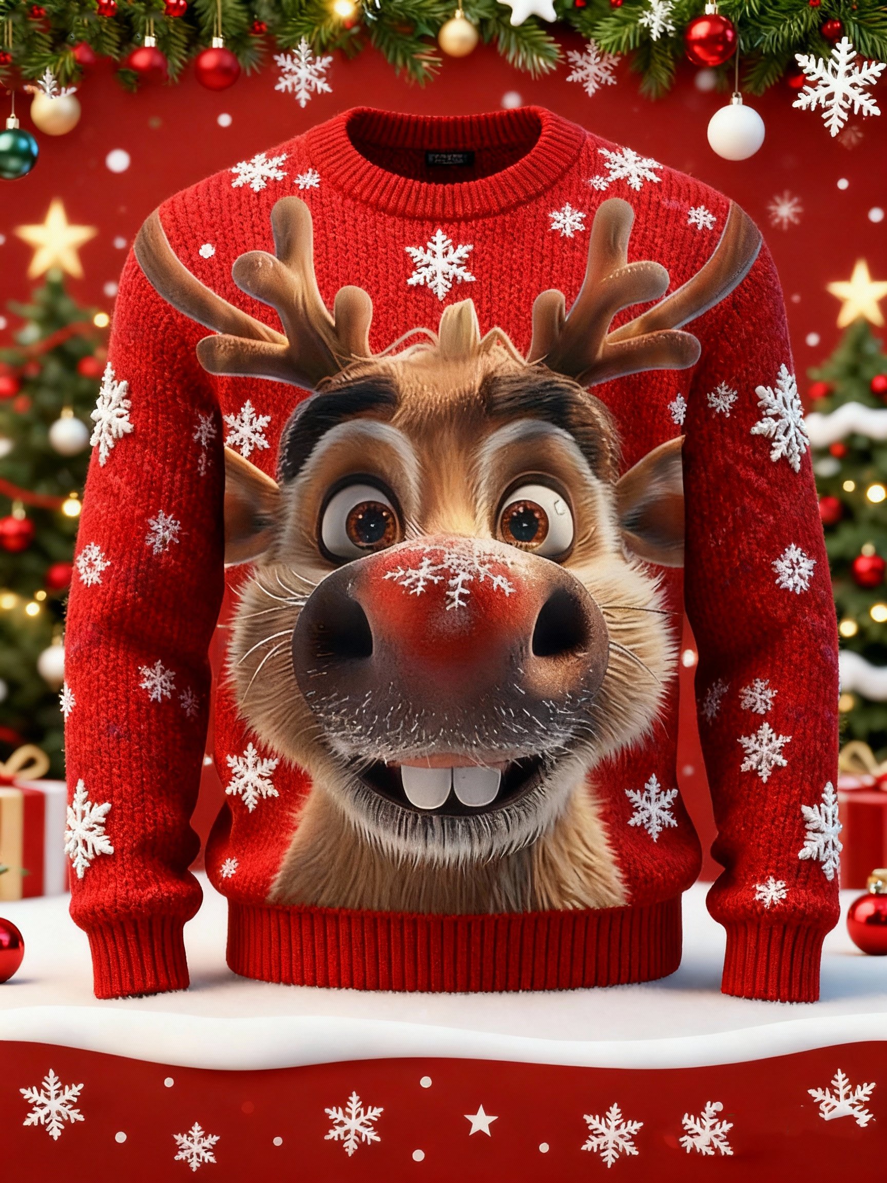 Men's Cartoon Reindeer Print Ugly Christmas Sweater