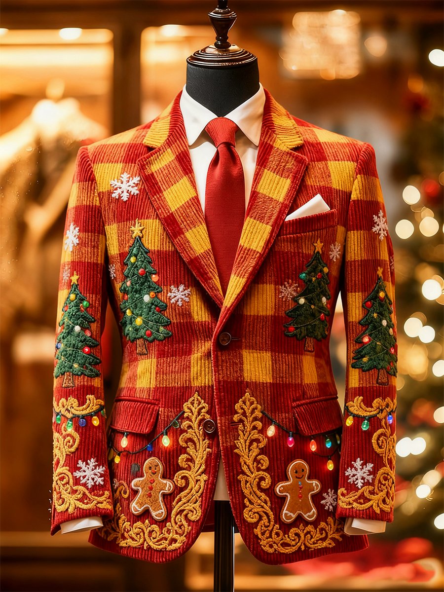 Men's Christmas Corduroy Gingerbread Man Suit Jacket
