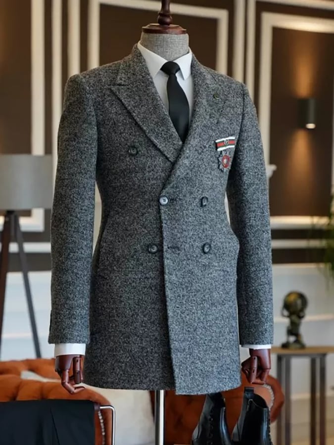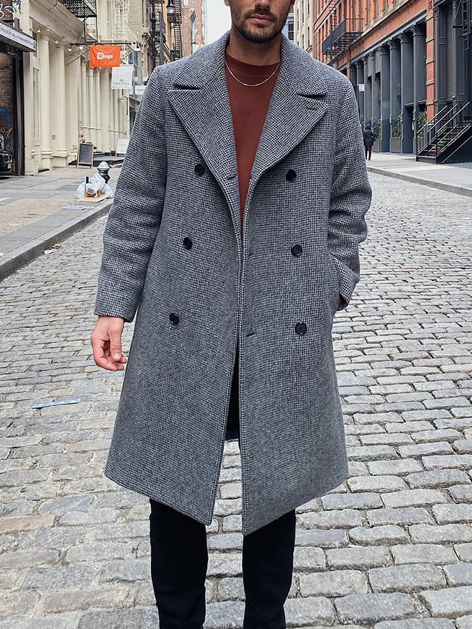 Men's Fashionable Double Breasted Casual Jacquard Woolen Coat