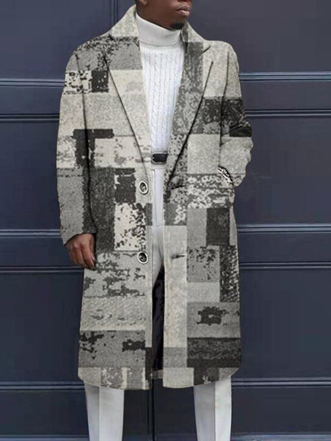 Men's Retro Geometric Print Double-Breasted Casual Trench Coat
