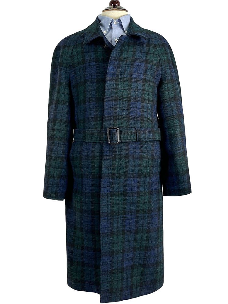 Men's Retro Plaid Design Patch Pocket Casual Woolen Coat (Including Belt)