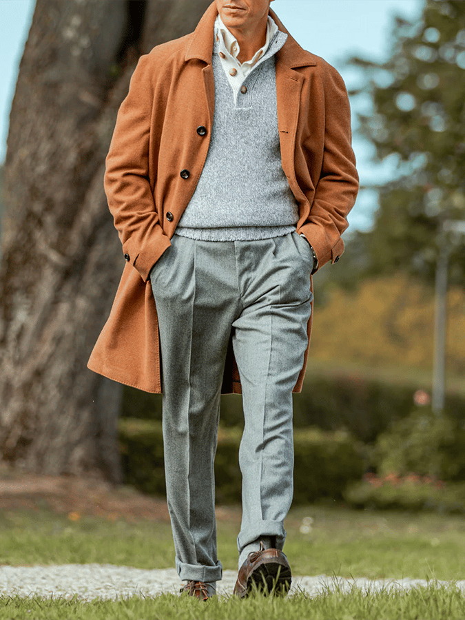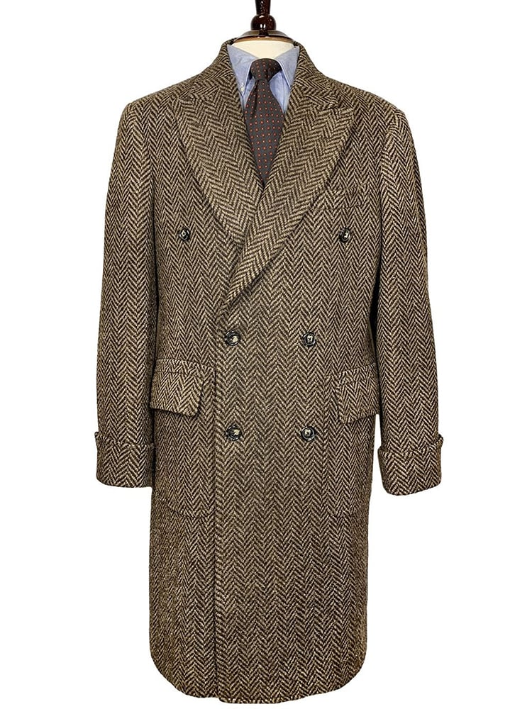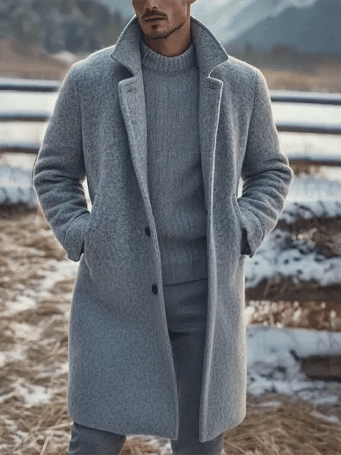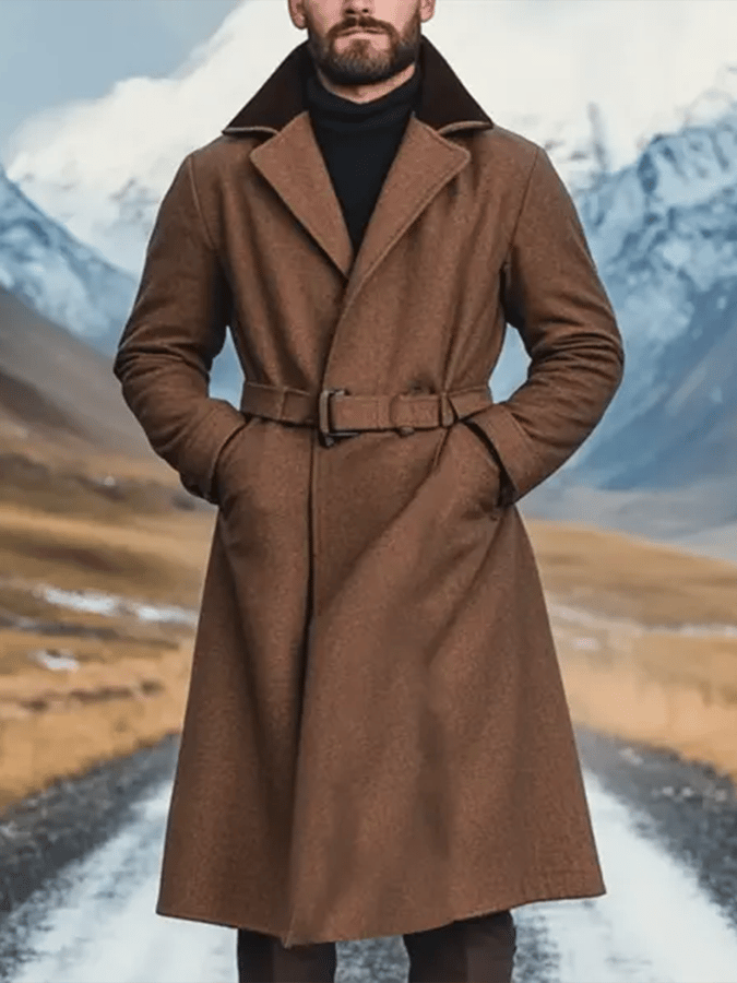 Men's Vintage Wool Lapel Collar Mid-Length Coat Jacket
