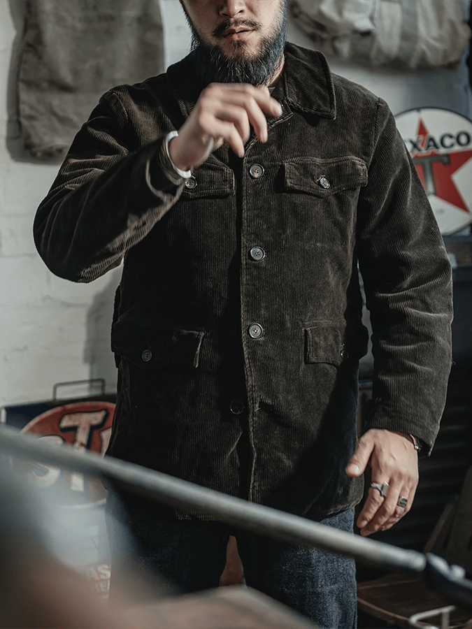 Men's Retro Multi-Pocket Design Casual Corduroy Coat