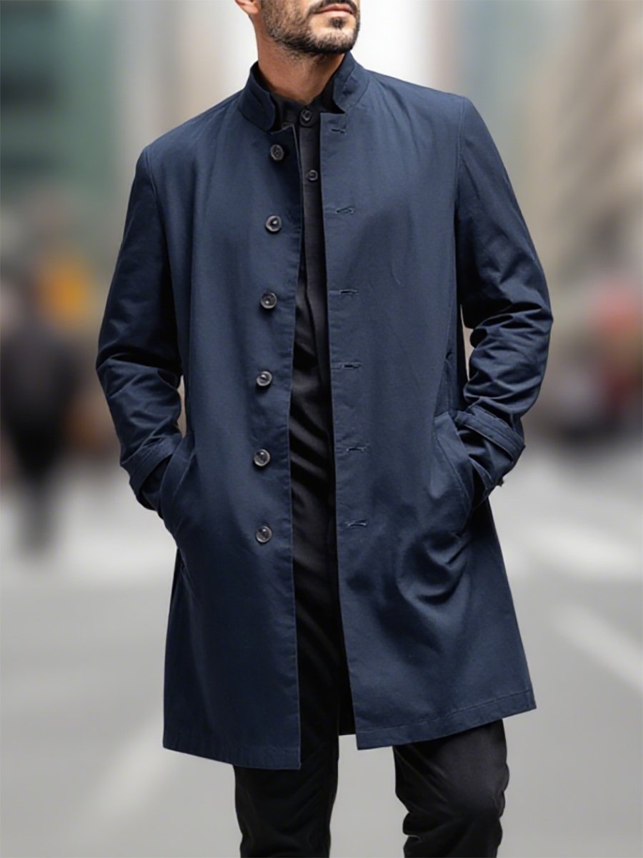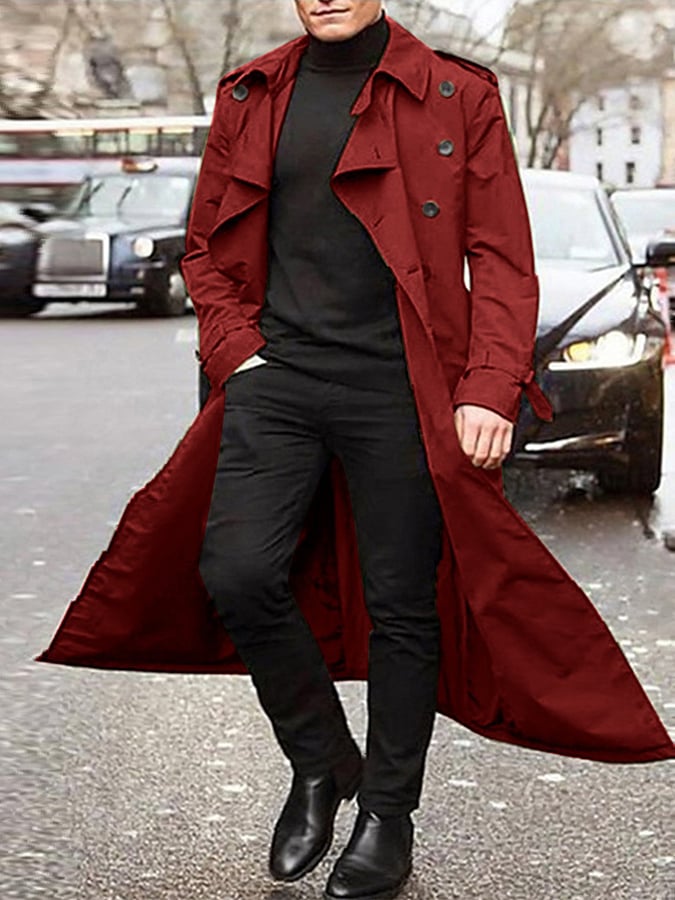 Men's Business Loose Fit Button Belt Casual Trench Coat