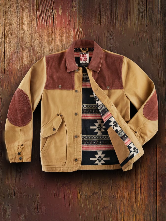 Men's Vintage Western Patchwork Aztec Multi-Pocket Farm Work Jacket Coat