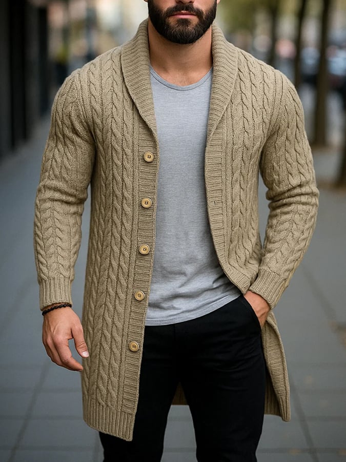 Men's mid-length sweater, thick needle twisted cardigan, woolen coat